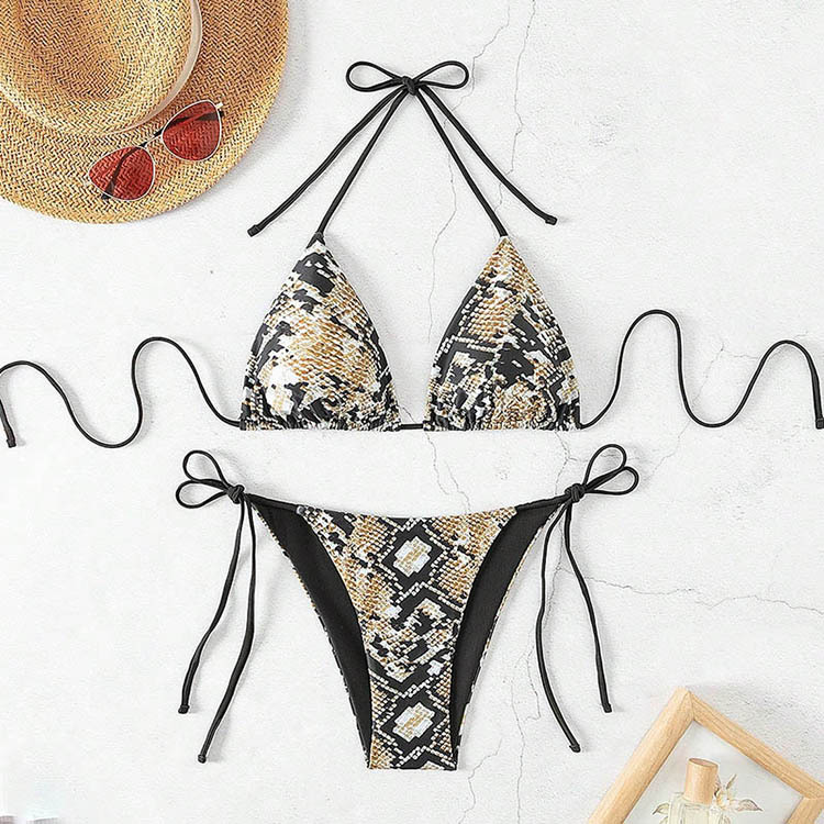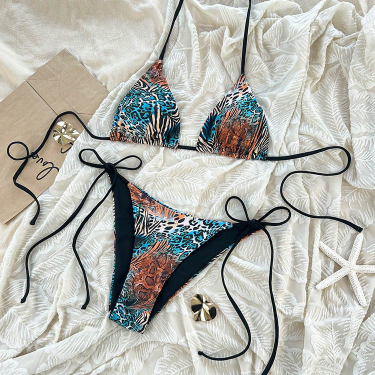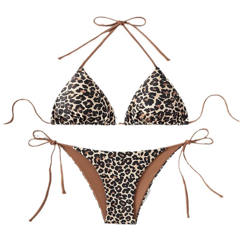 Amazon внешняя торговля бикини купальник 2025 новый европейский и американский леопардовый принт на шнуровке сексуальный купальник женский bikini