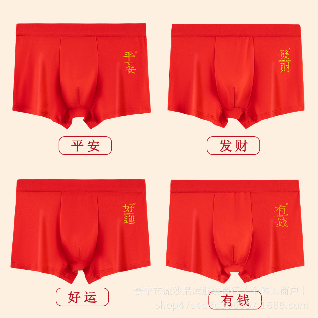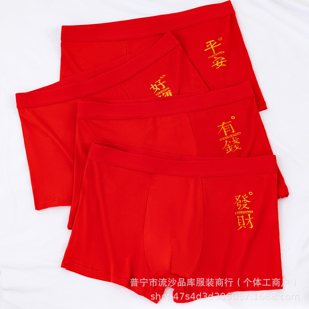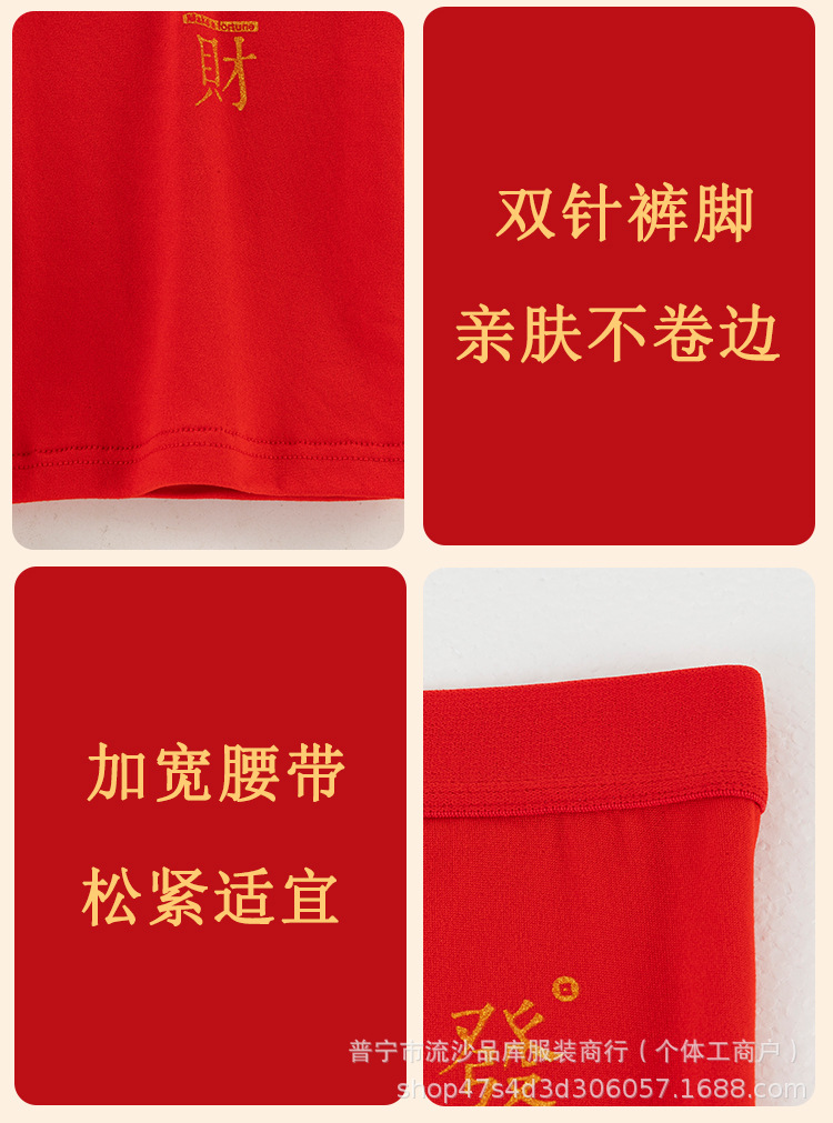 Большие красные мужские угловые брюки Нового года праздничная средняя талия дышащая, большие размеры брюки, мужские четырехугольные шорты