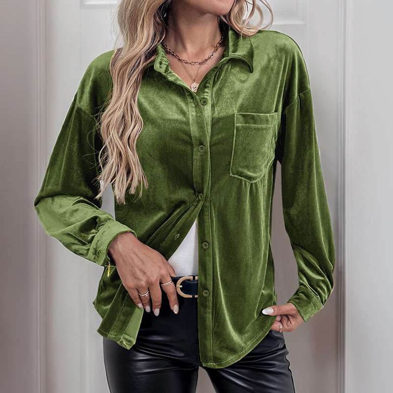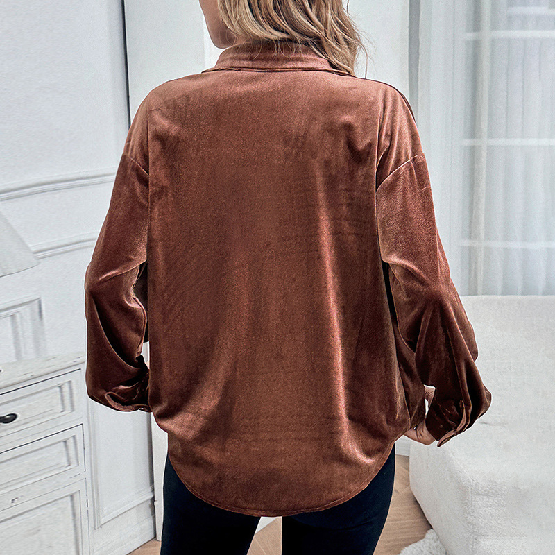 Рубашка Amazon с отворотом для внешней торговли 2025 осень-зима новый европейский и американский трансграничный бархатный кардиган с длинными рукавами