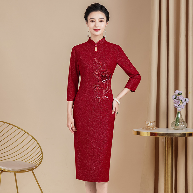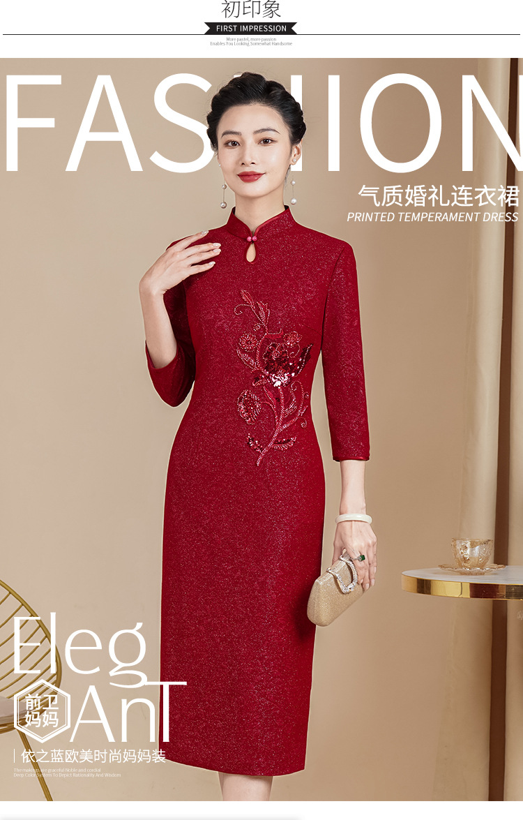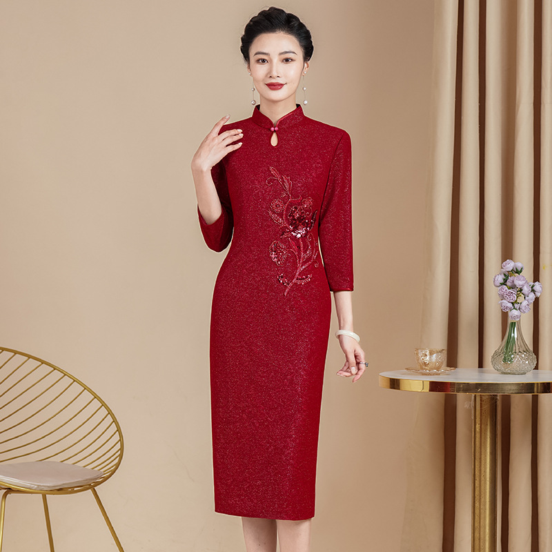Свадебный подарок мама платье благородное платье большого размера платье летний осенний чонсам свадебный банкетный наряд 2024 новый стиль