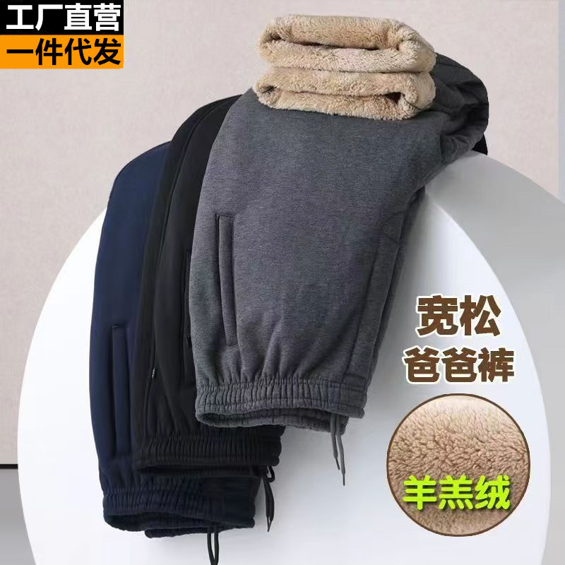 Осенне-зимние свободные спортивные штаны для мужчин среднего и старшего возраста, повседневные брюки с эластичным поясом, хлопковые брюки для носки поверх одежды, ветрозащитные и теплые.
