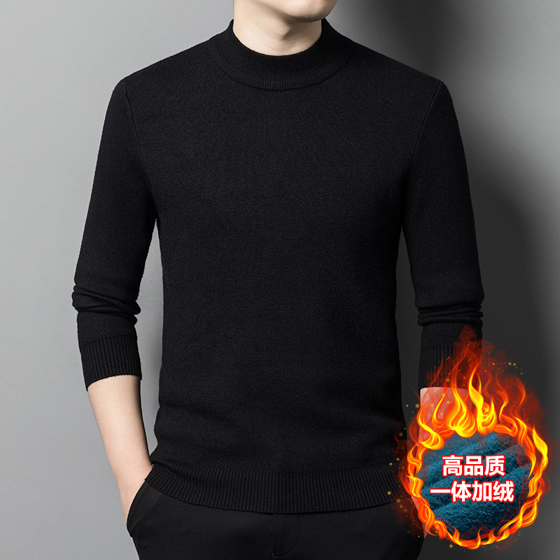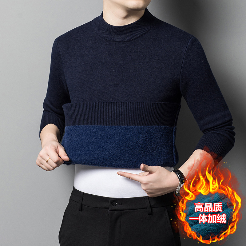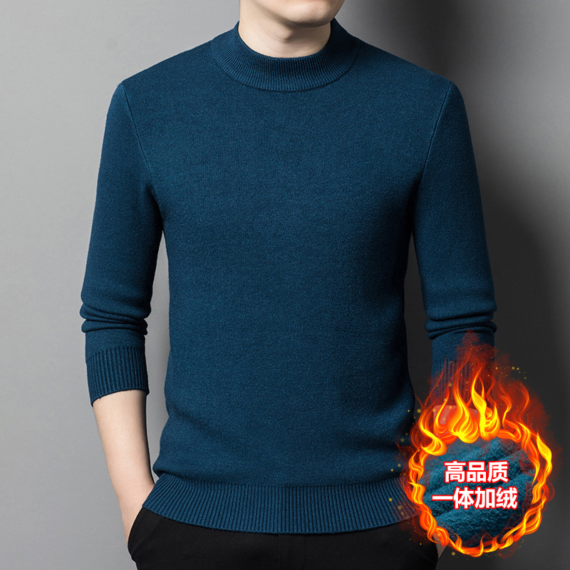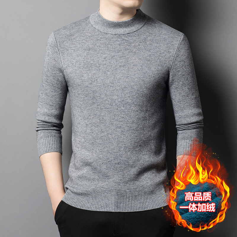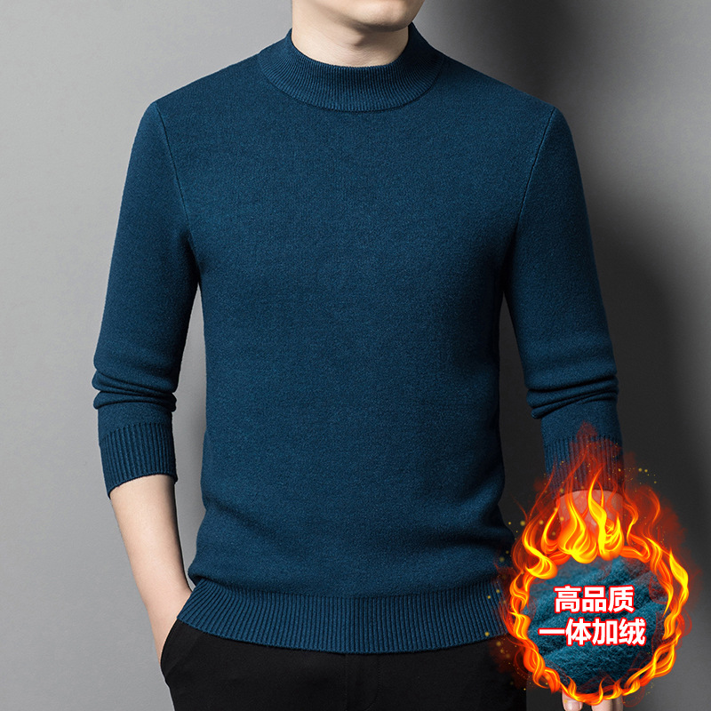 Прямая трансляция взрывного свитера мужской зимний бархат утолщение теплый свитер мужской полувысокий воротник бархатный свитер мужской