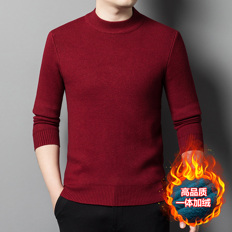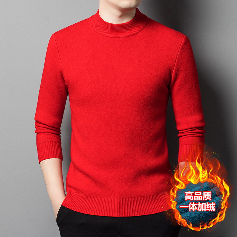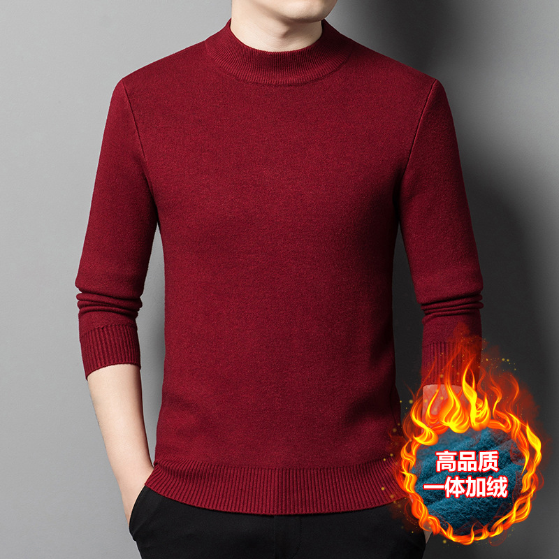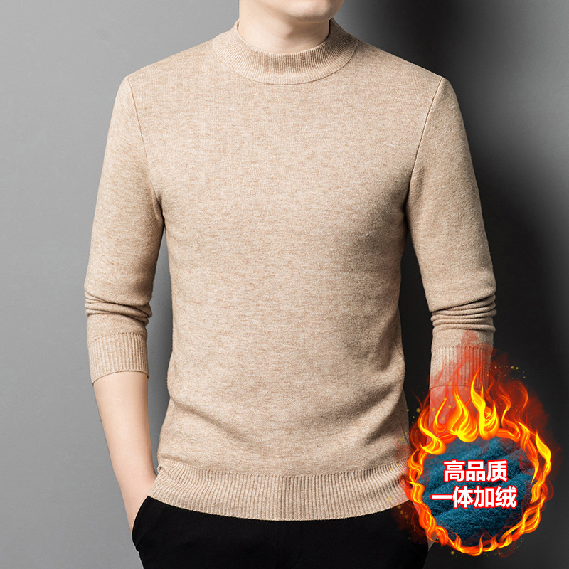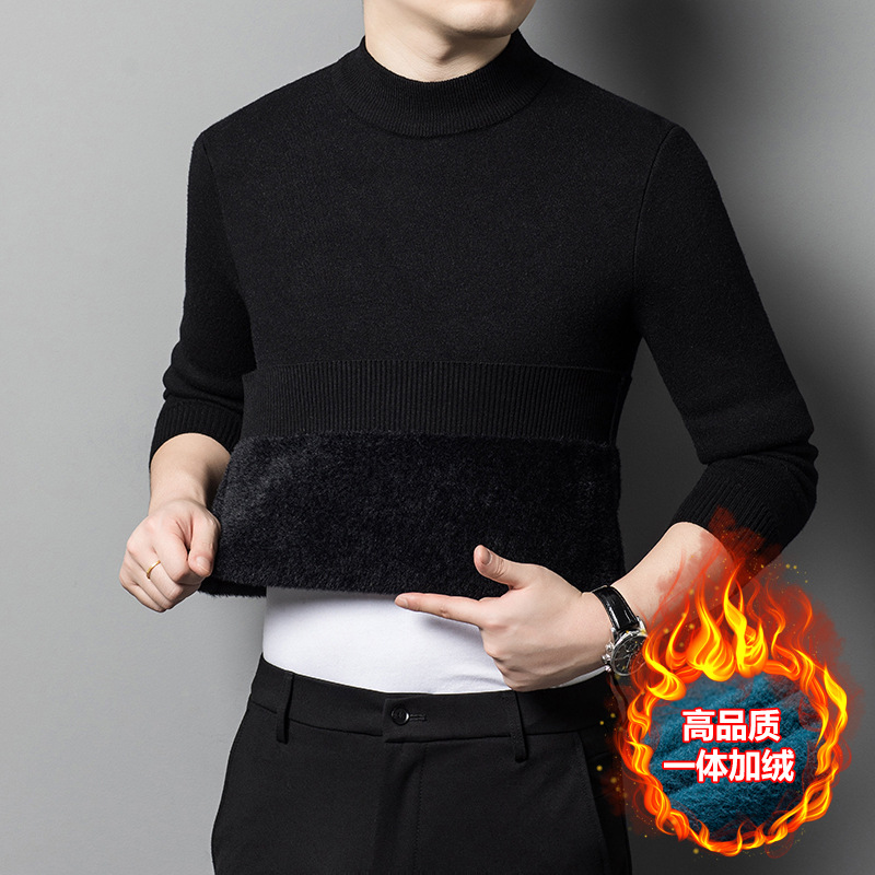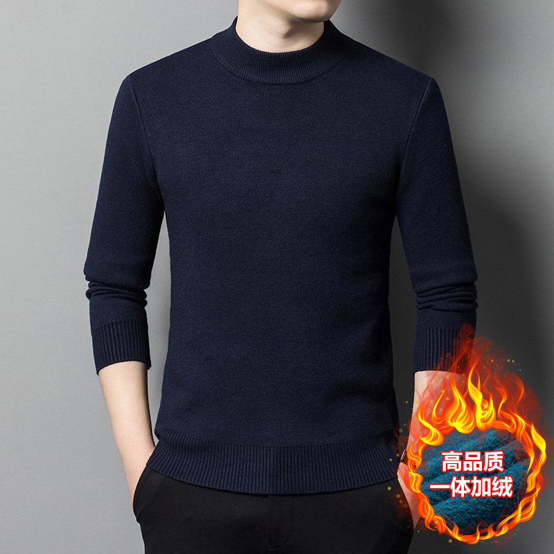 Прямая трансляция взрывного свитера мужской зимний бархат утолщение теплый свитер мужской полувысокий воротник бархатный свитер мужской