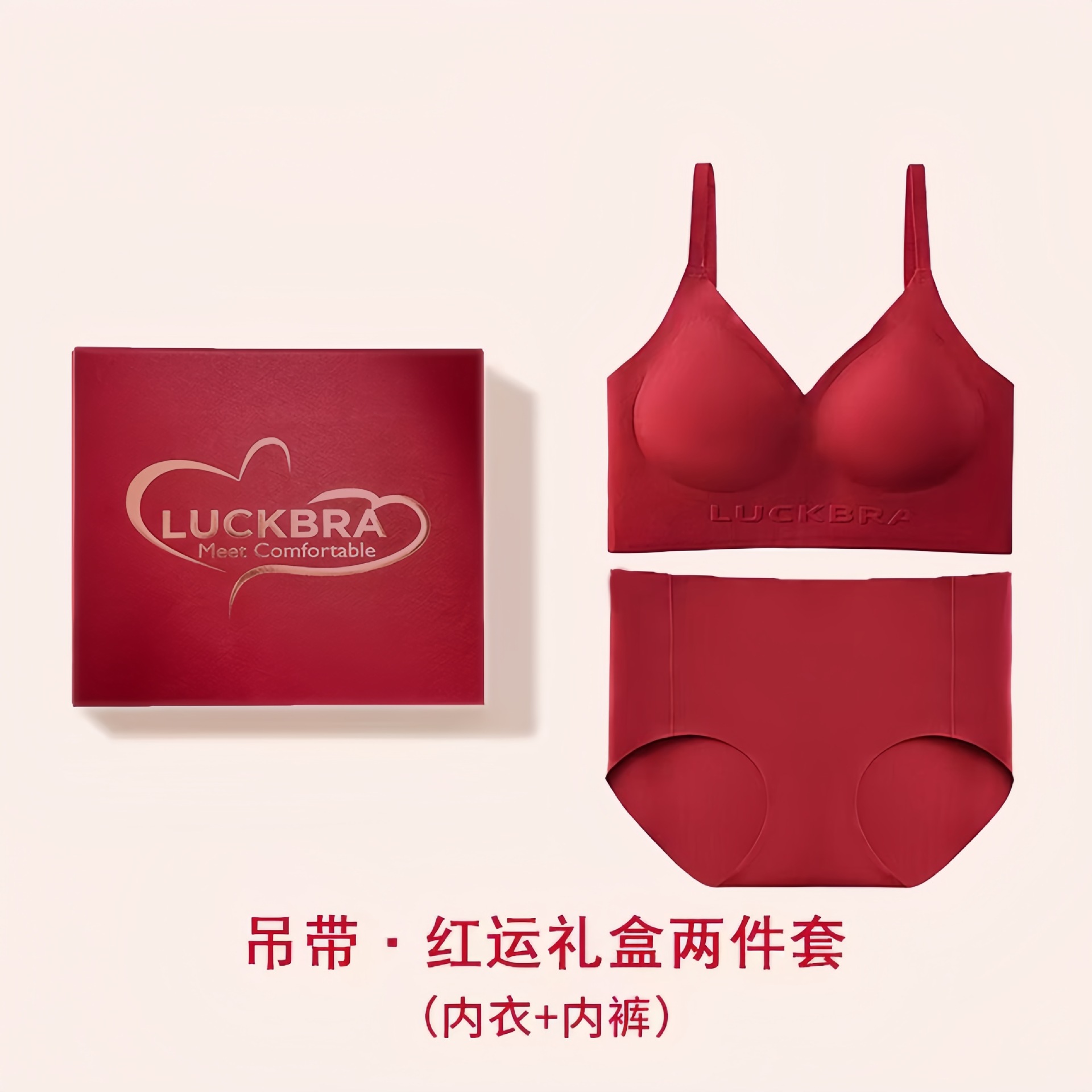 Новогодний свадебный комплект бесшовного нижнего белья: красный бюстгальтер без косточек, удобный, в подарочной упаковке