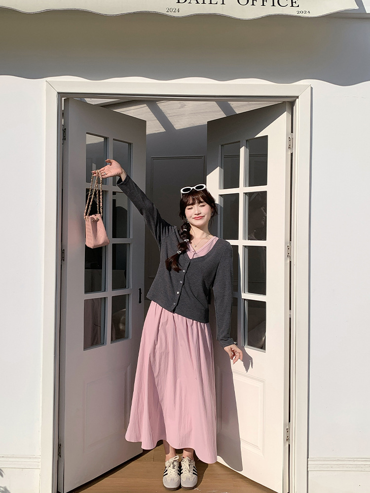 Милый и универсальный дизайн, женский осенний вязаный кардиган больших размеров для полных фигур, подчеркивающий талию и корректирующий фигуру, скрывающий жир на теле 63497.