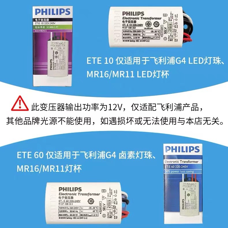 Philips светодиодный галогенный ET-E60/ET-E10 лампа чашка лампа трансформатор 220V к 12V прожектор балласт