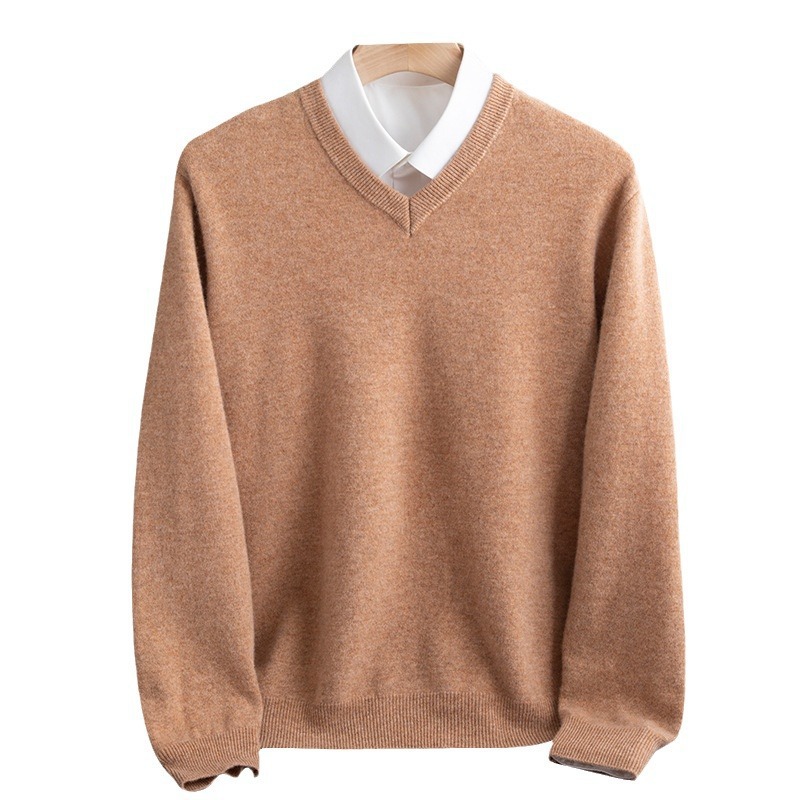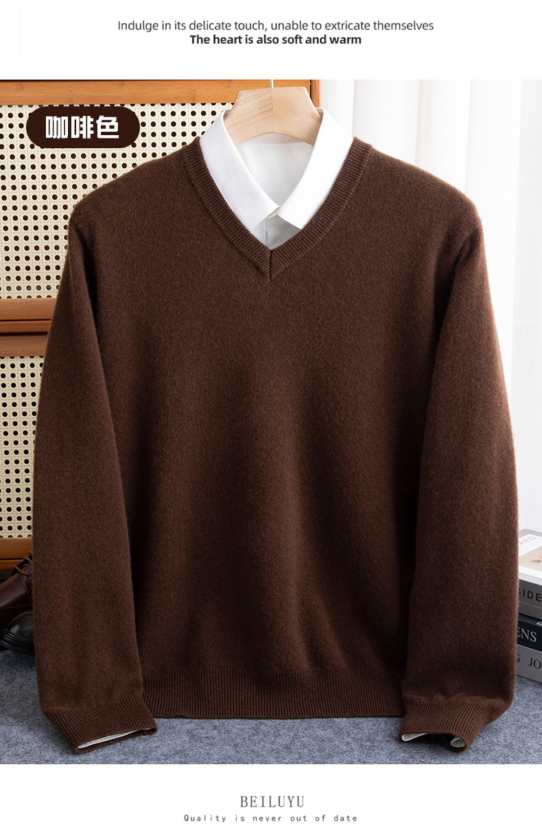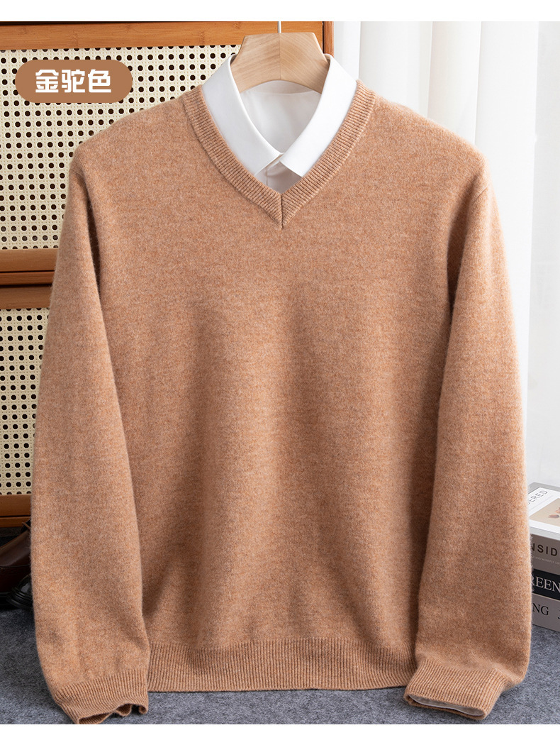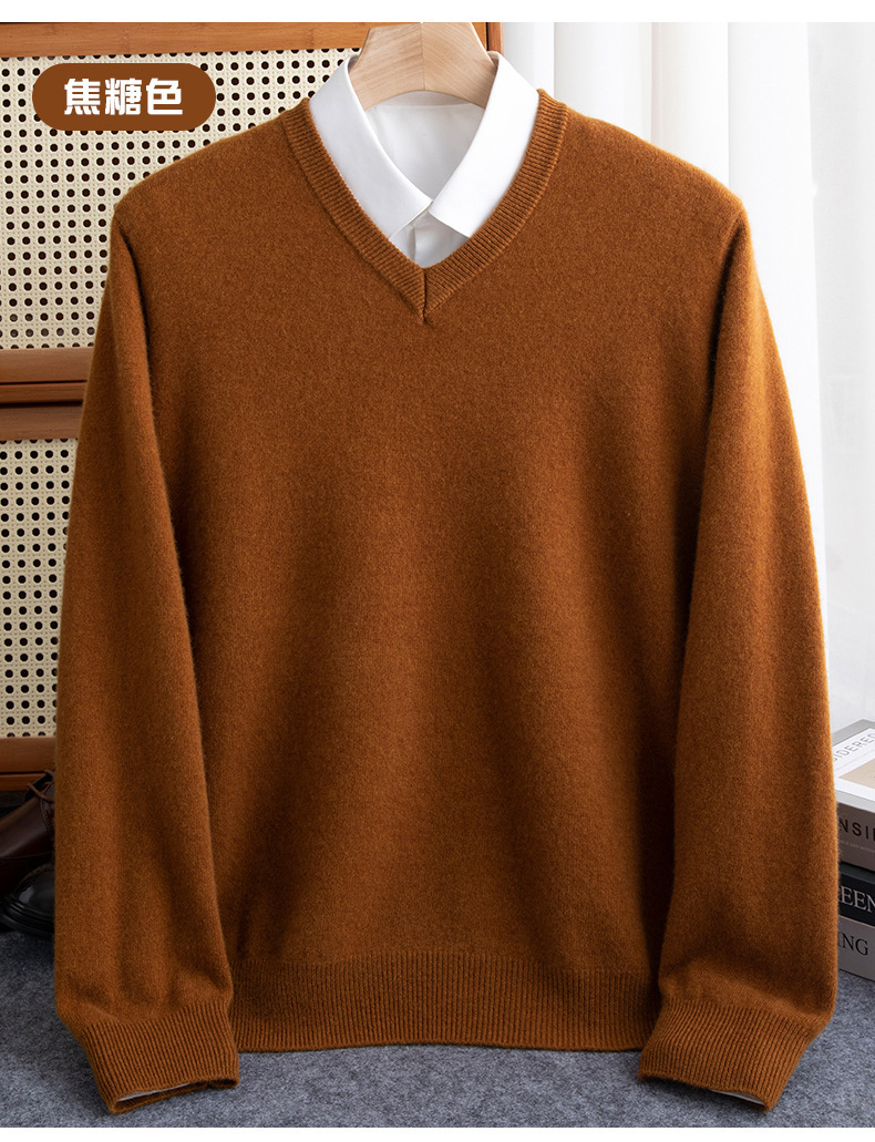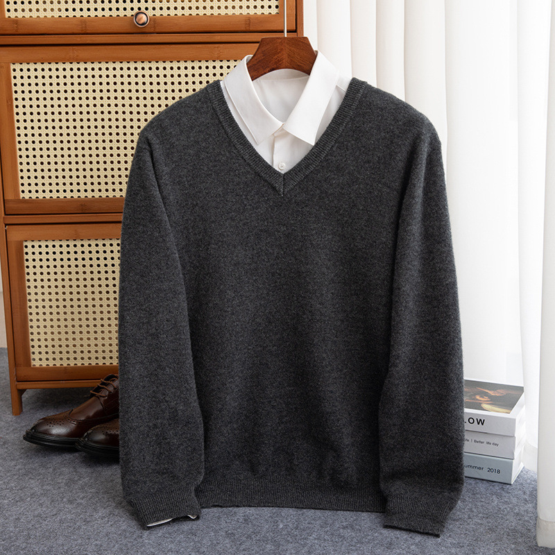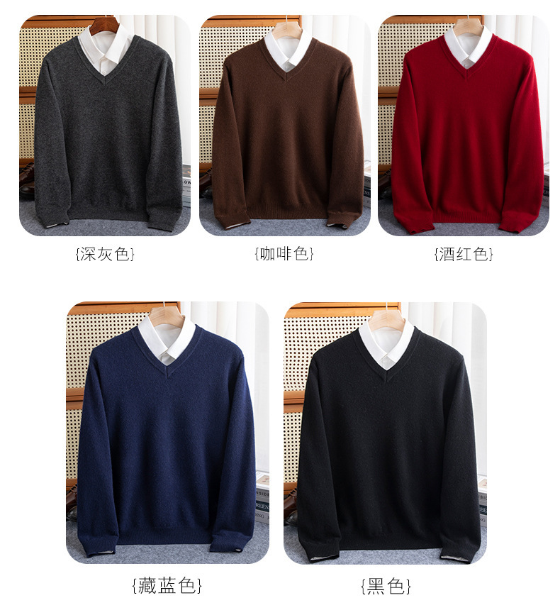 Осенний и зимний новый мужской вязаный свитер с V-образным вырезом