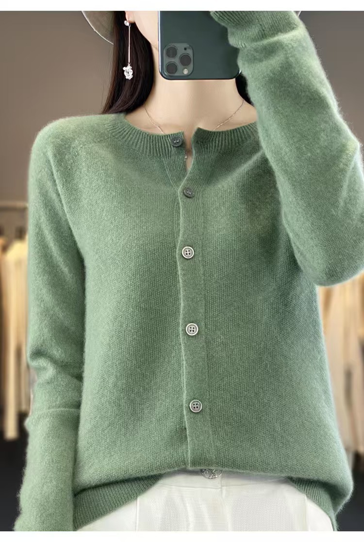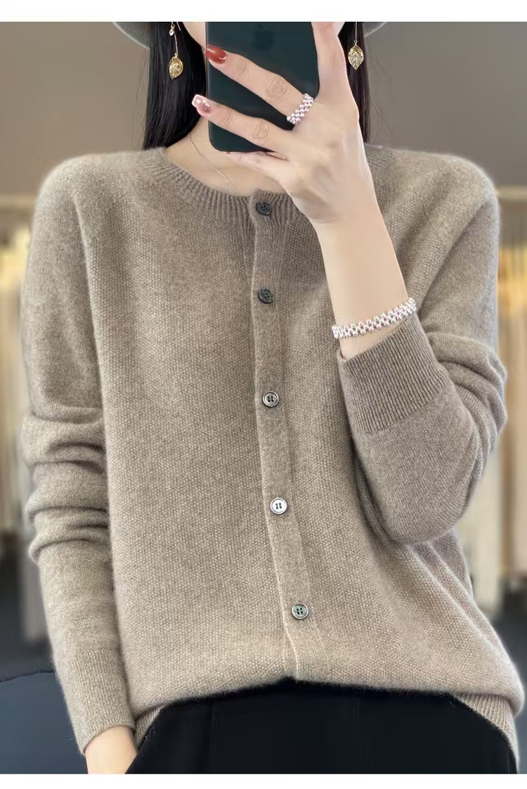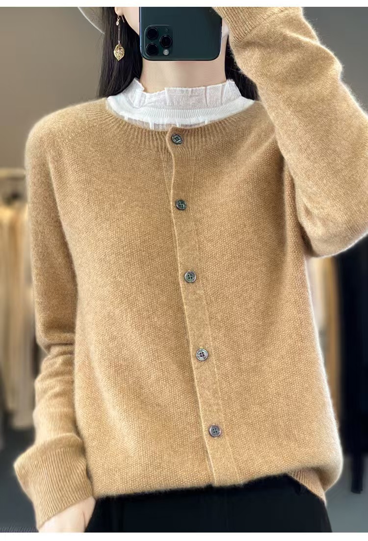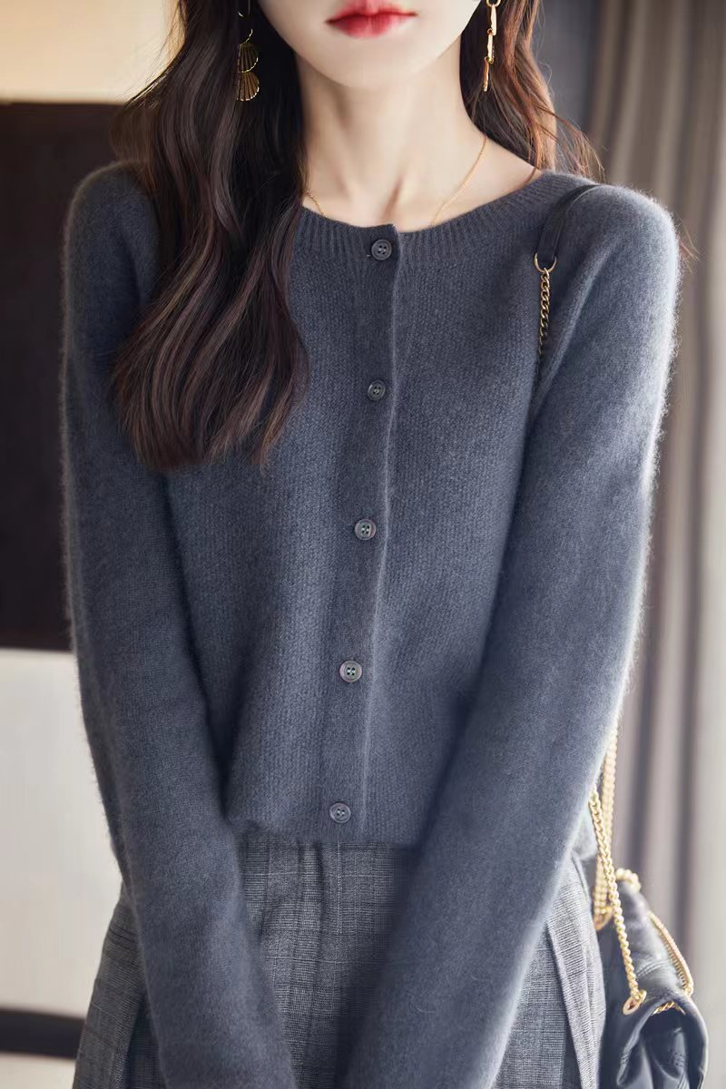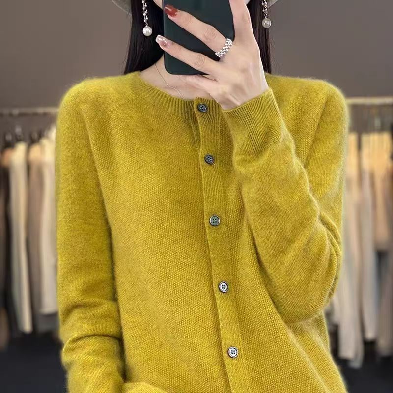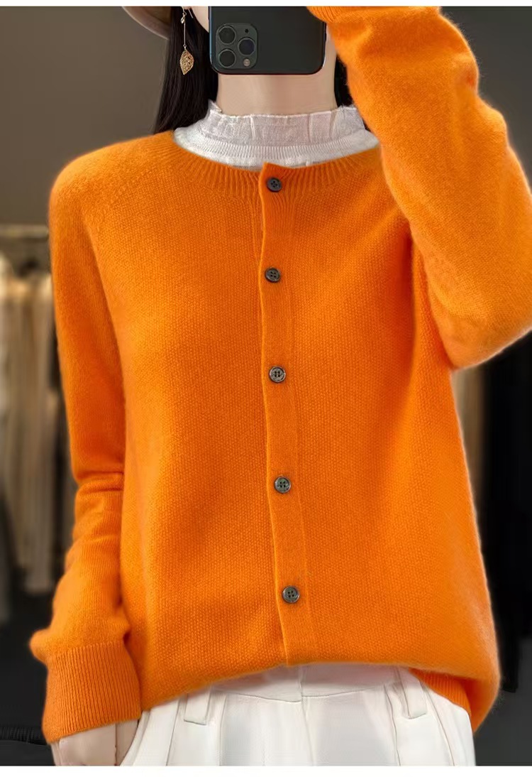 Готовый женский кардиган первой линии, трикотаж с иглой османтуса, свободный трикотажный кардиган с круглым вырезом, верхняя верхняя куртка для внутреннего ношения