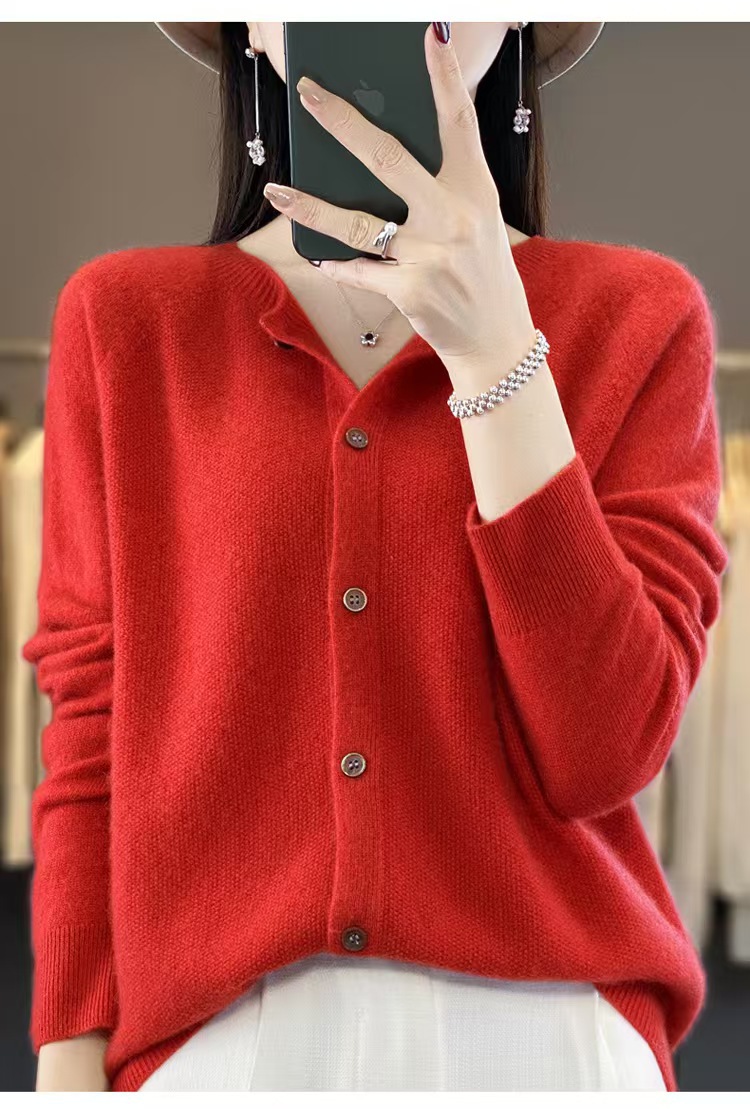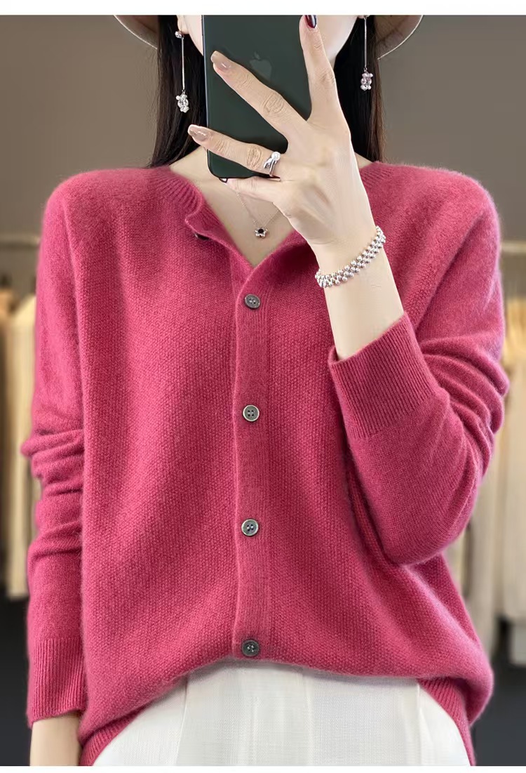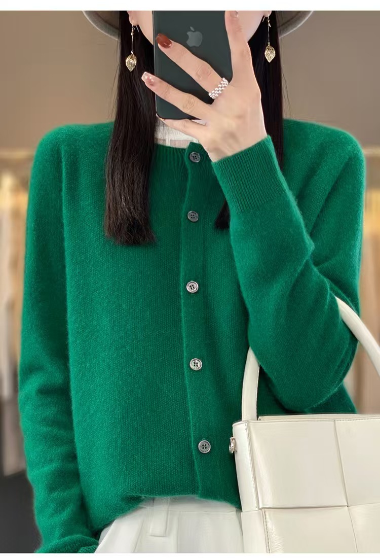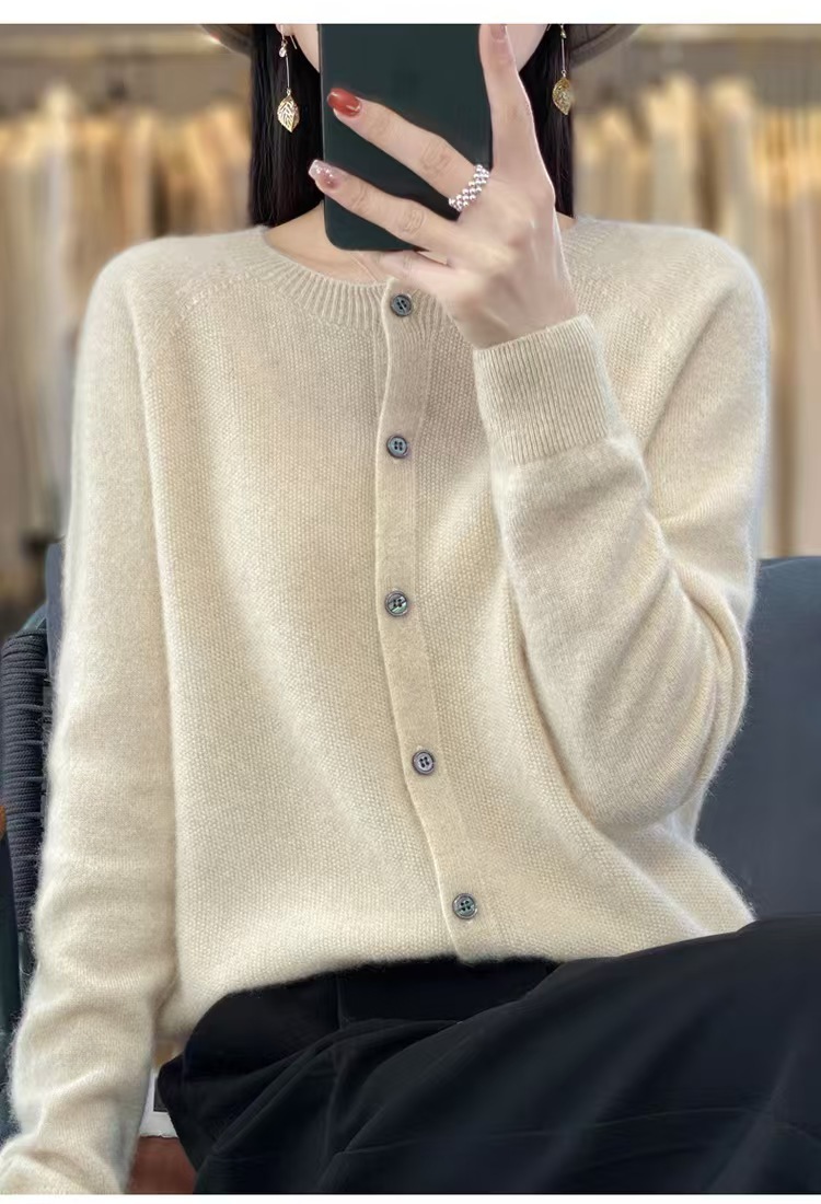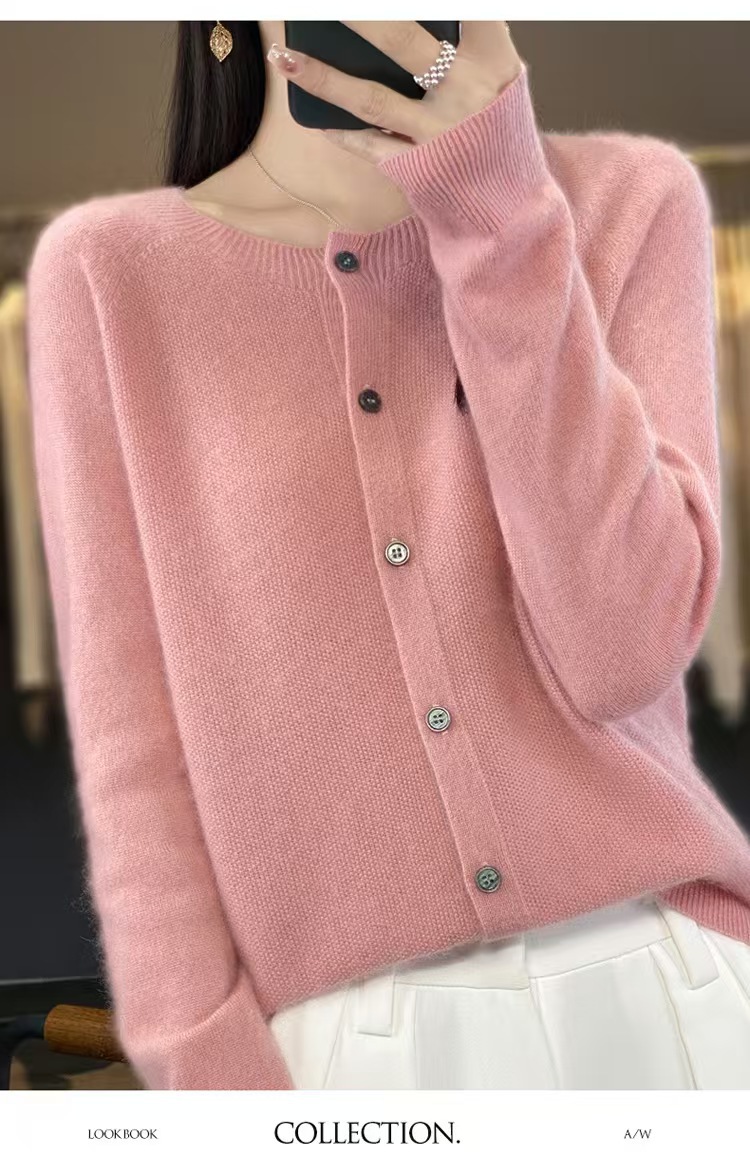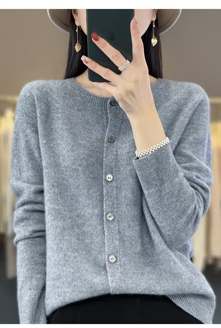 Готовый женский кардиган первой линии, трикотаж с иглой османтуса, свободный трикотажный кардиган с круглым вырезом, верхняя верхняя куртка для внутреннего ношения