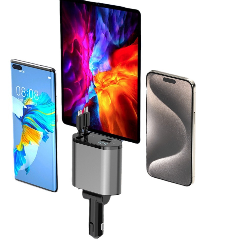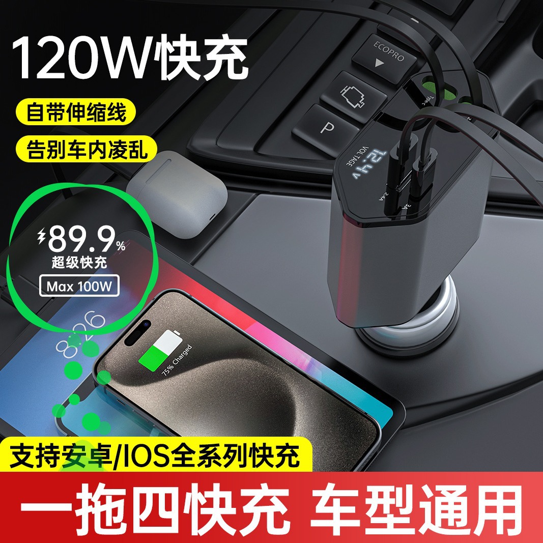 Трансграничное автомобильное зарядное устройство 120W супер быстрая зарядка одна перетаскивание четыре телескопических провода Многофункциональный прикуриватель адаптер производителя