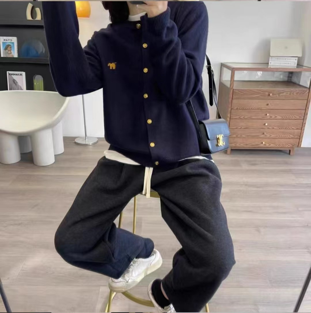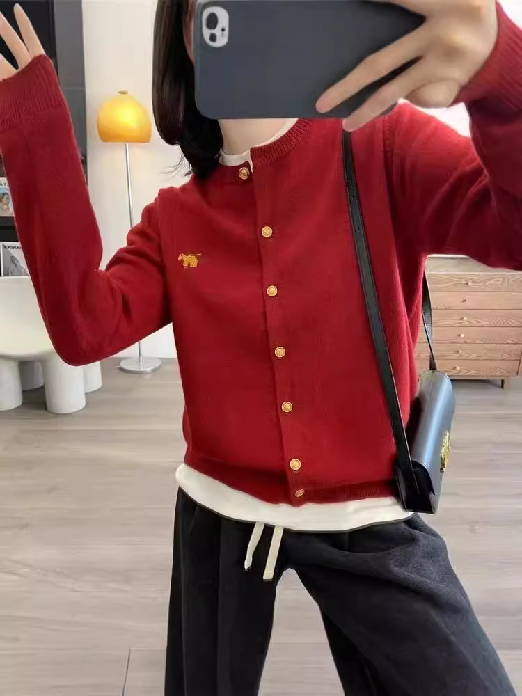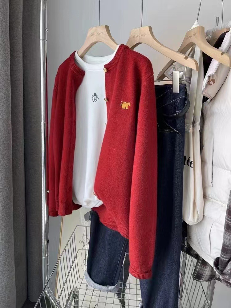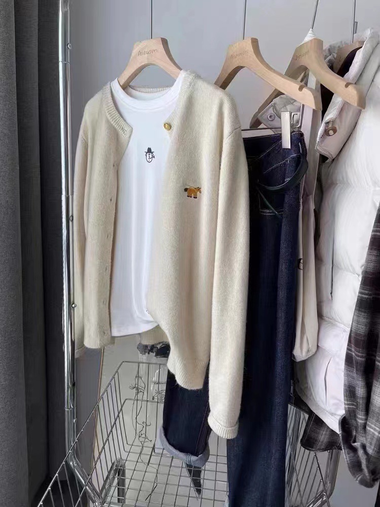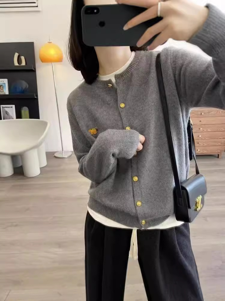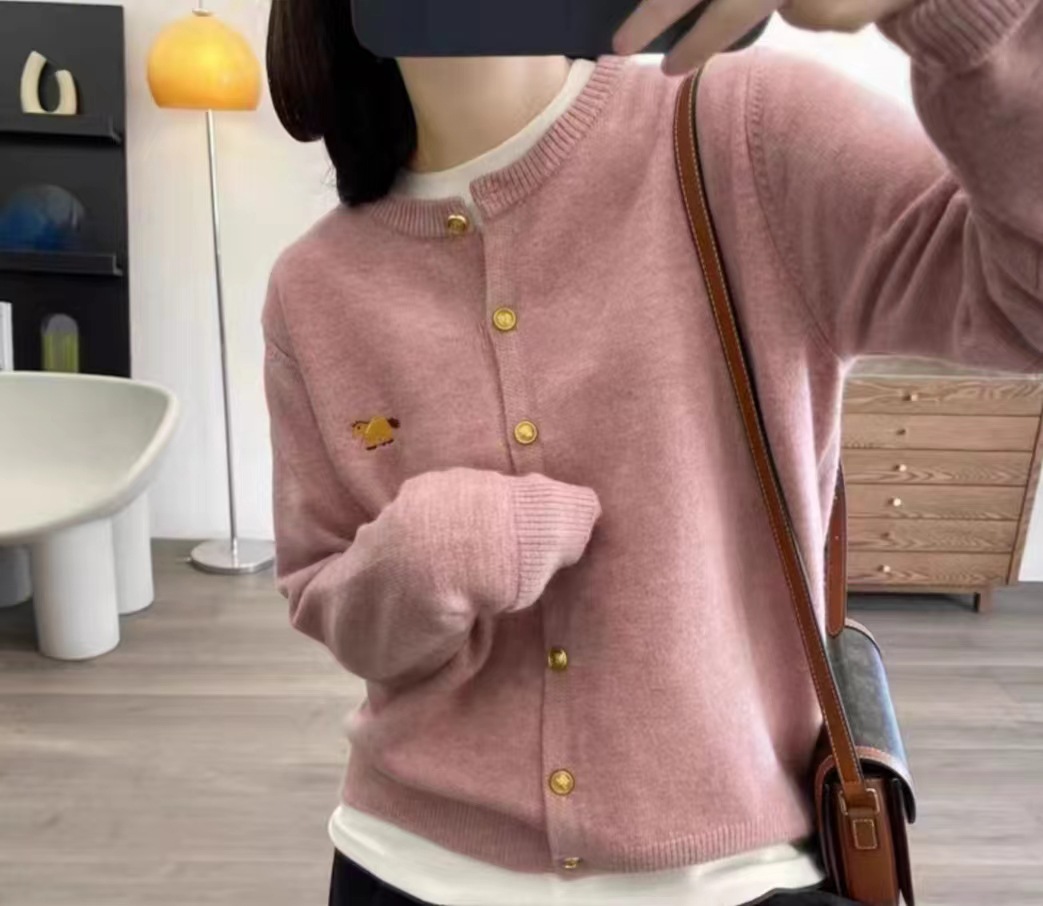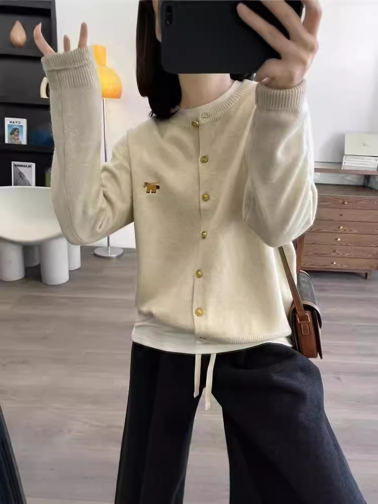 Мирано шерстяной трикотажный кардиган женский свободный с вышивкой пони трикотажный свитер с круглым вырезом куртка рыхлое мясо