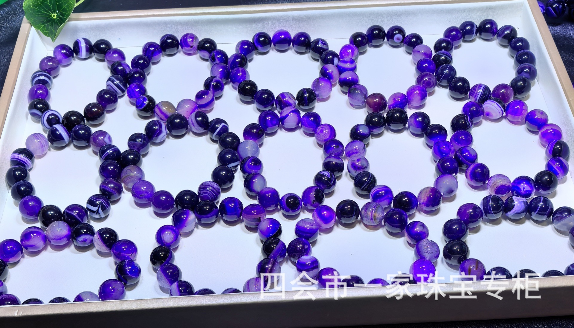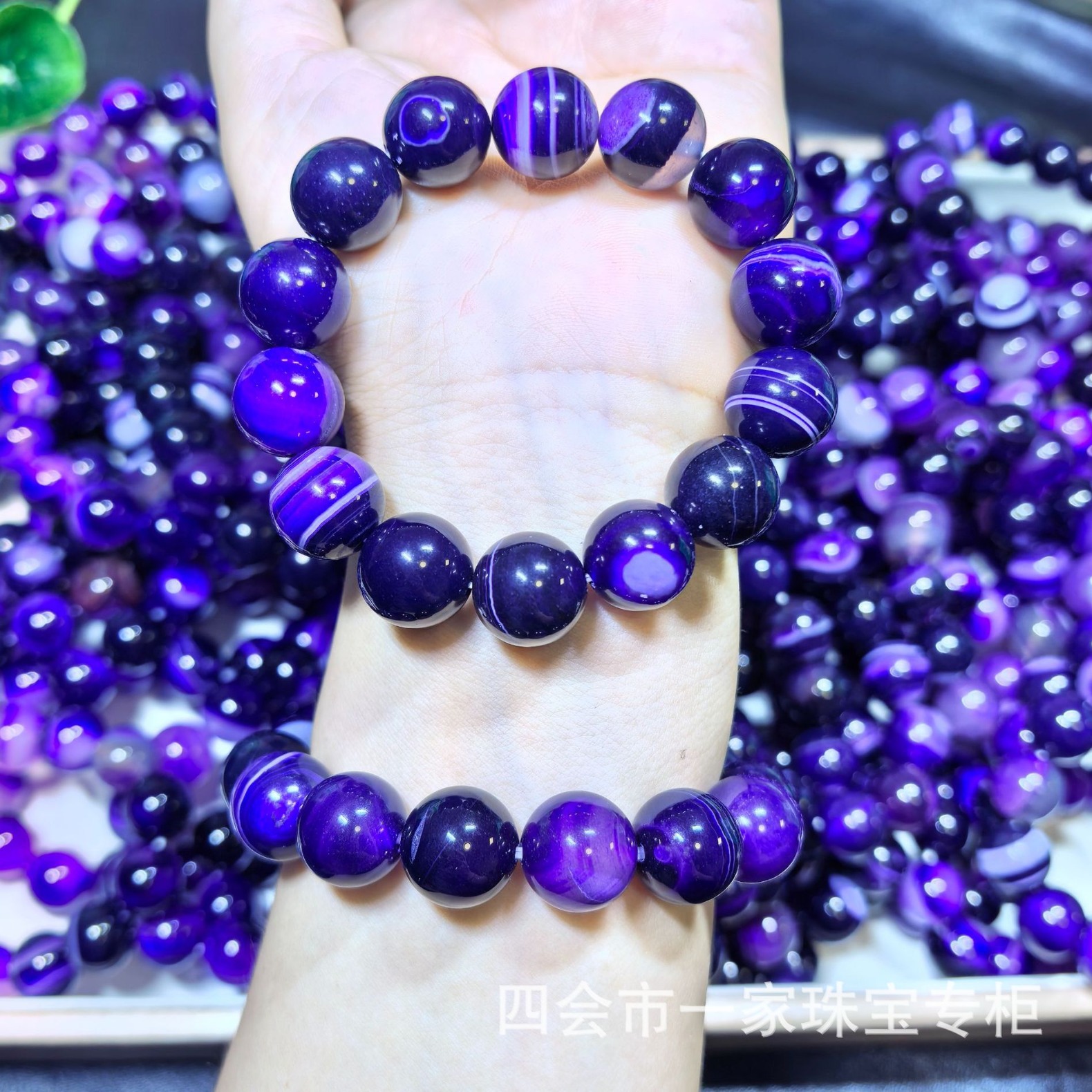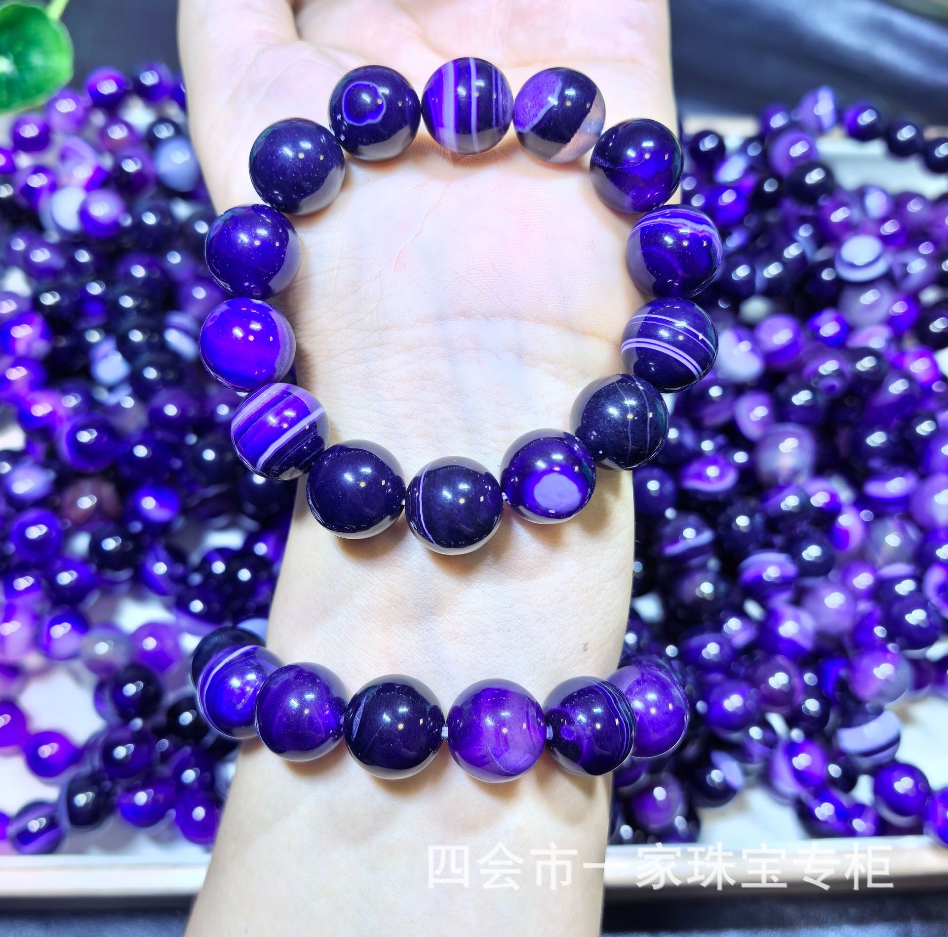 Браслет из натурального агата, полосатый агат, агат в шелковой оплетке, фиолетовый полосатый агат для прямых трансляций, оптовая продажа браслетов из агата