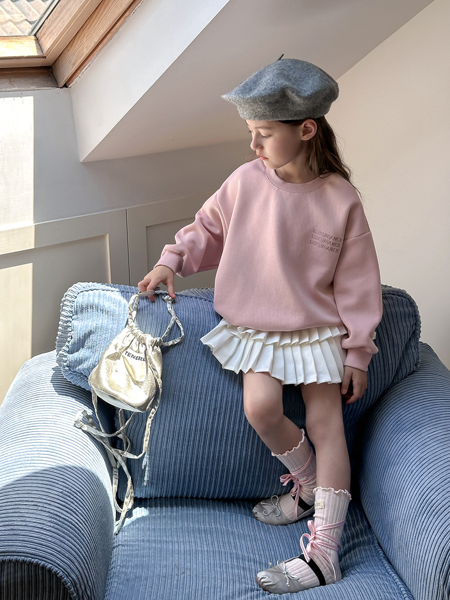 Aimo Bebe Детский розовый свитер весна и осень Новый дизайн девушки маленький ангел пуловер топ