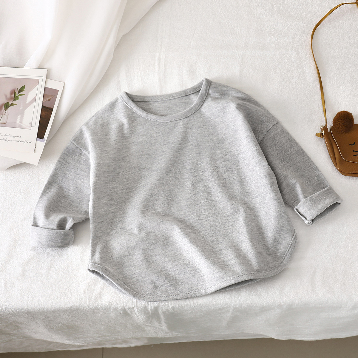 Детская футболка с длинным рукавом, осенняя, из чистого хлопка, в корейском стиле для мальчиков, топы для девочек, базовая рубашка для малышей, оптовая продажа детской одежды, для детей младшего возраста.