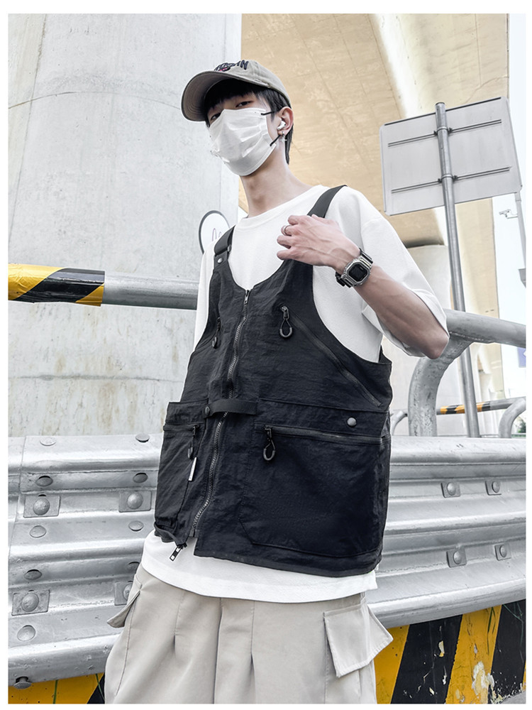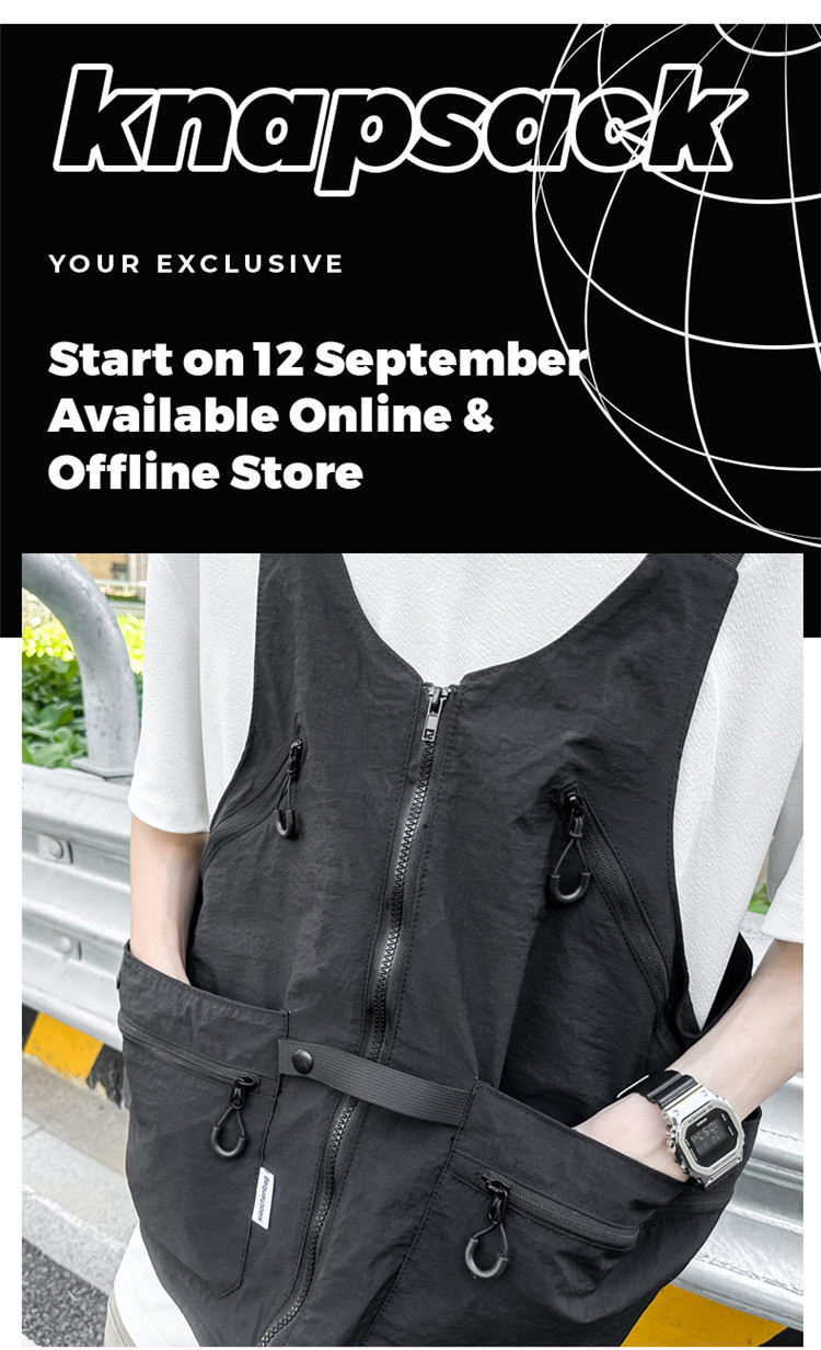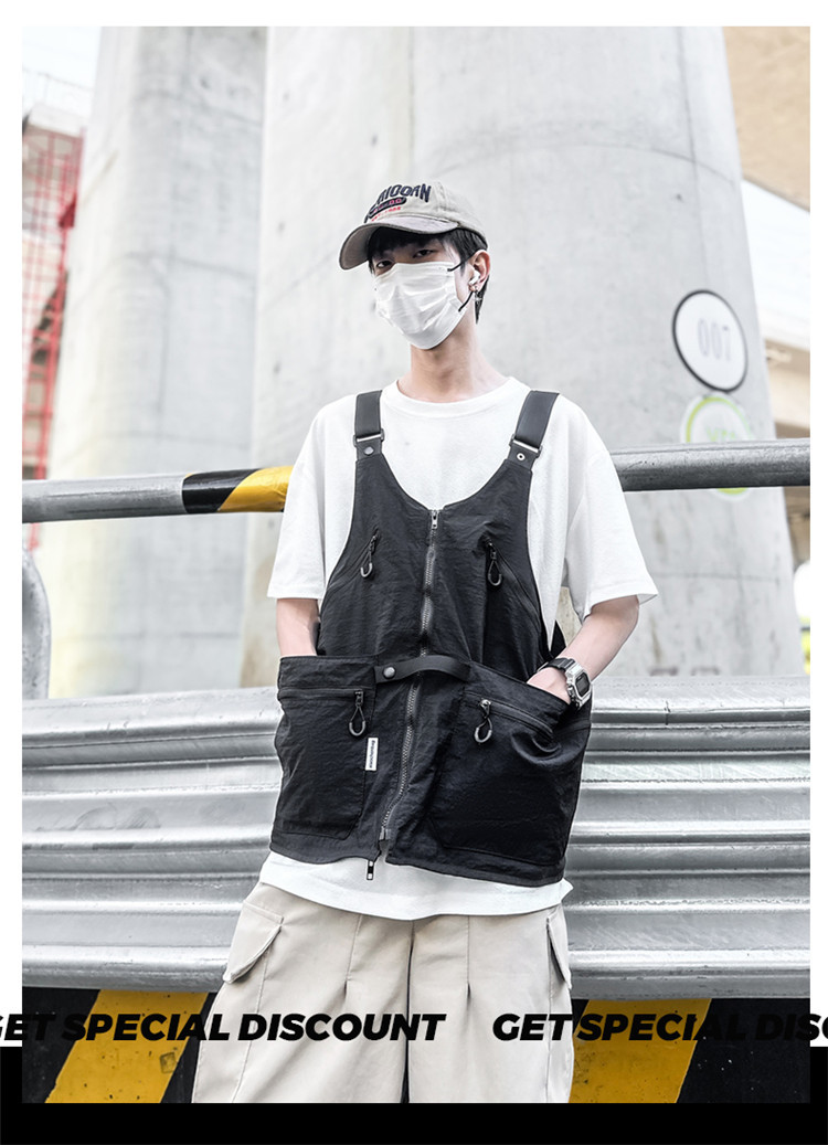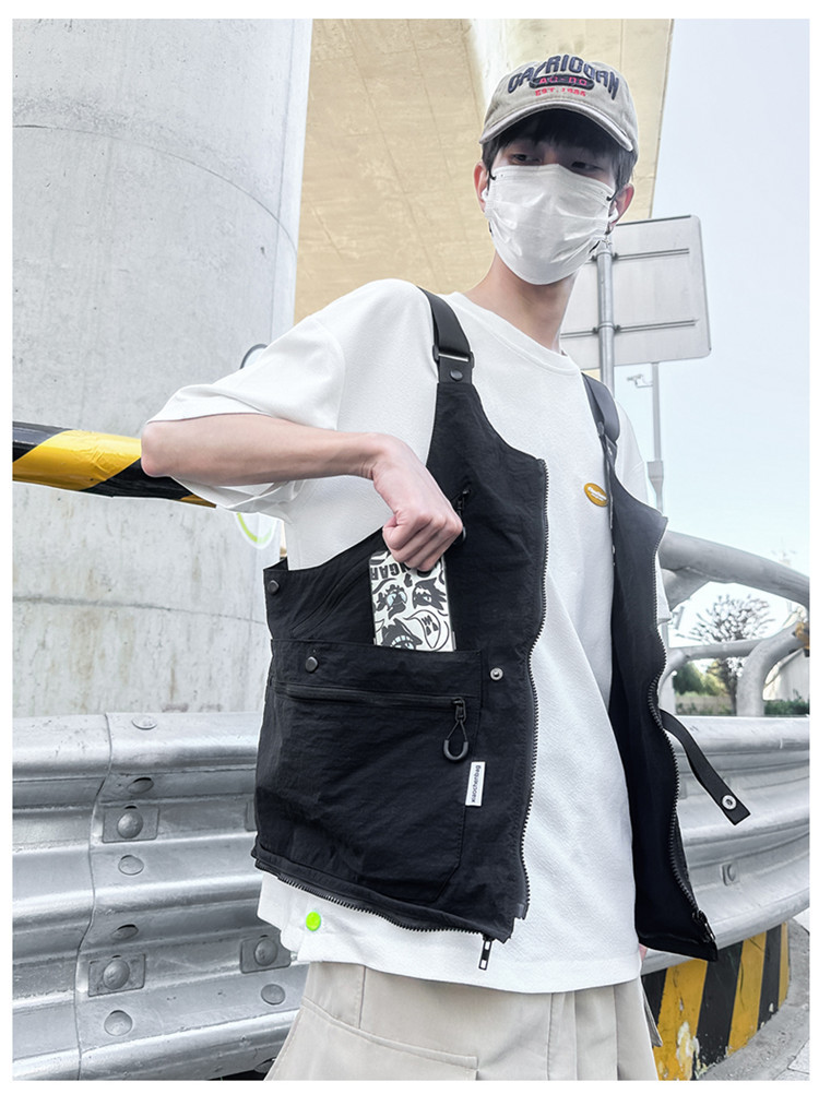 Модная брендовая рабочая одежда в гонконгском стиле, сумка через плечо двойного назначения, персонализированный походный рюкзак в горном стиле с несколькими карманами, большой вместительный рюкзак-жилет.