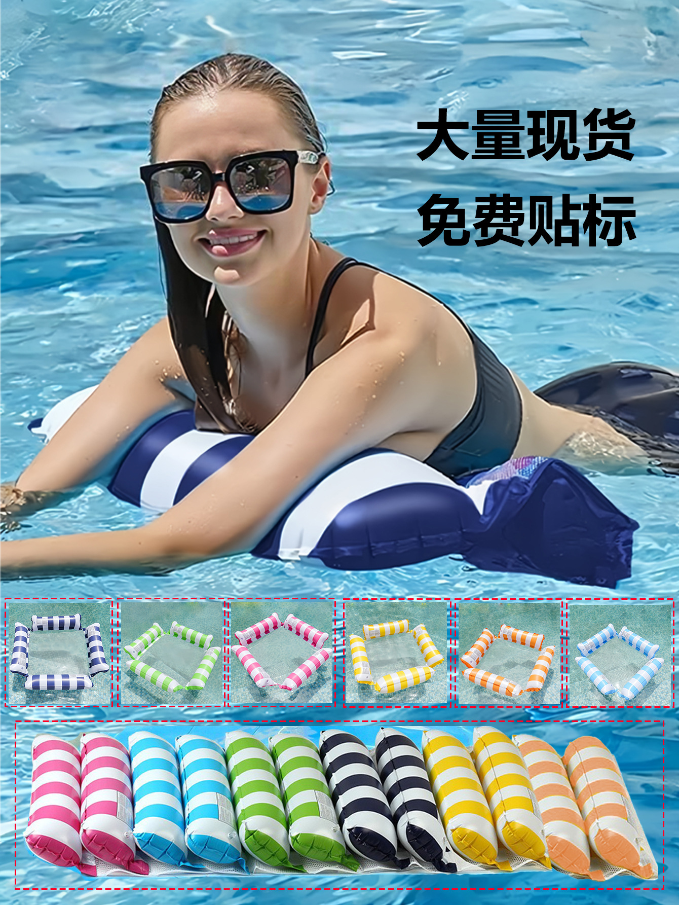 Новый стиль спот трансграничный складной спинки в полоску плавающая кровать надувной человек кресло плавающий стул для взрослых воды гамак