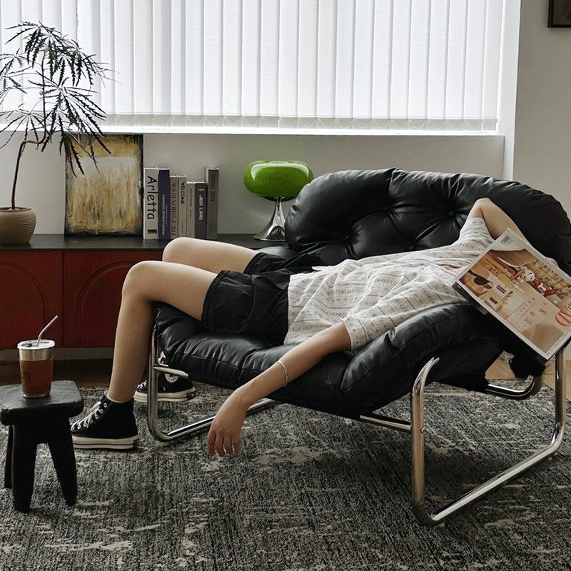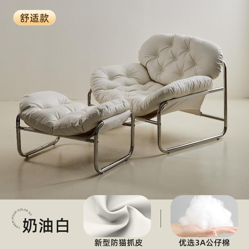 Одноместный диван-кресло минималистичный и легкий роскошная гостиная ленивый повседневный кресло-кресло со сливками в стиле ретро-стула в стиле Баухаус