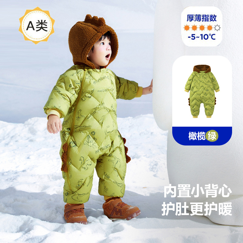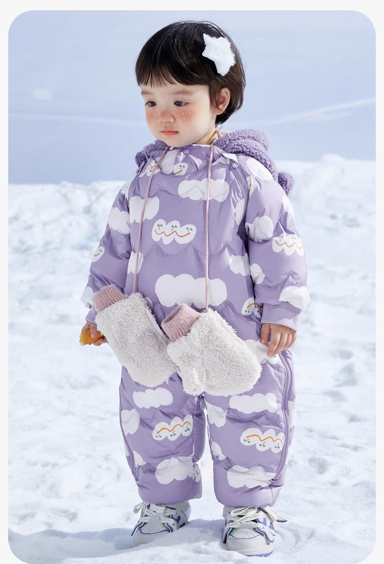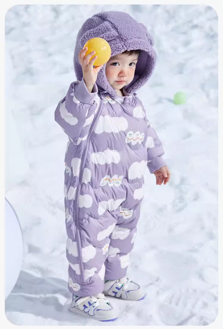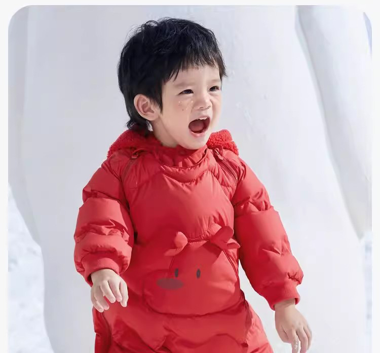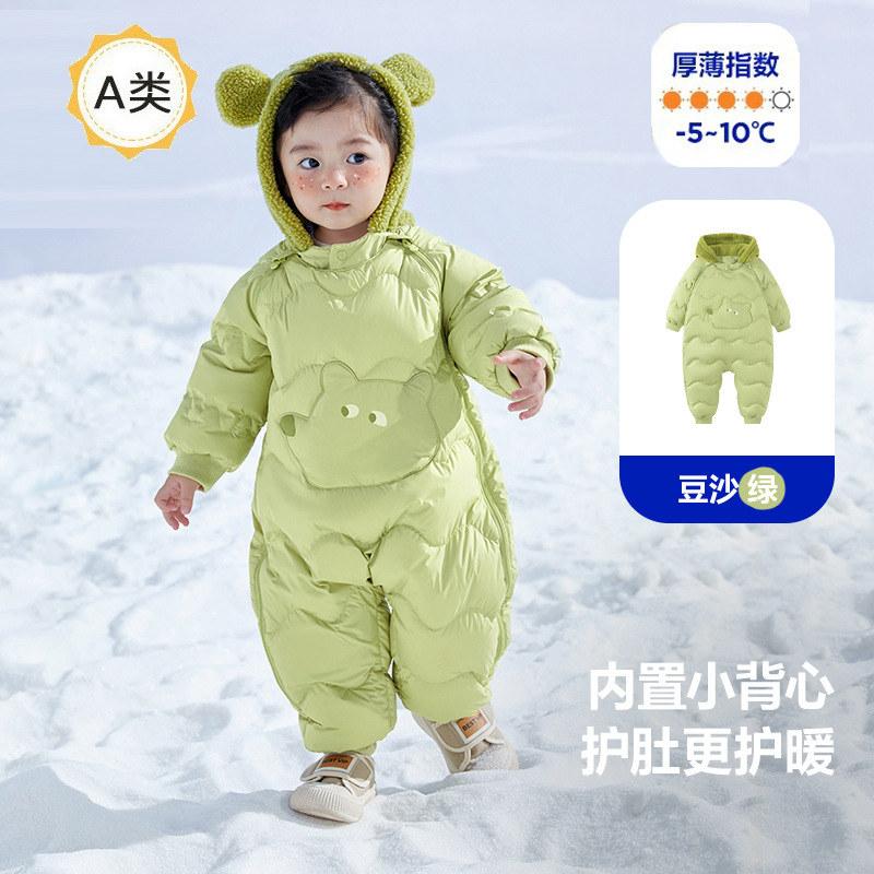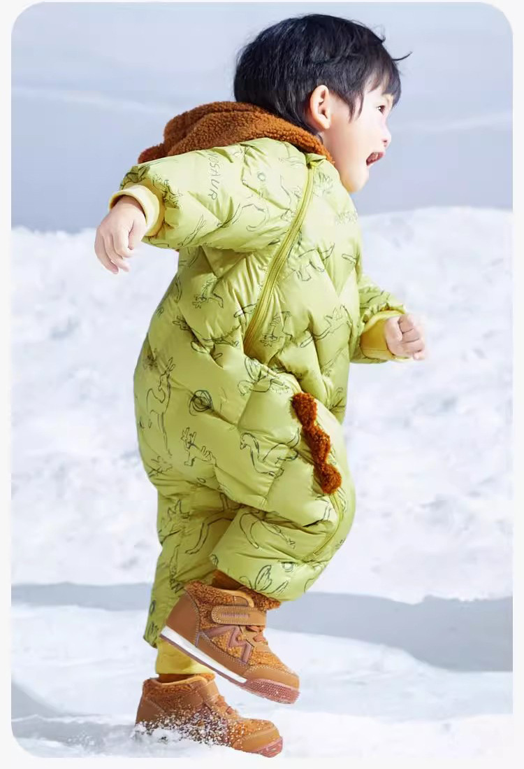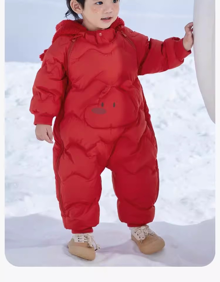Оптовая продажа детской одежды: комбинезон-пуховик для мальчиков и девочек на осень-зиму 2025 года, утепленный флисом, с защитой живота, для прогулок и игр на улице.