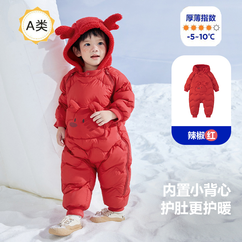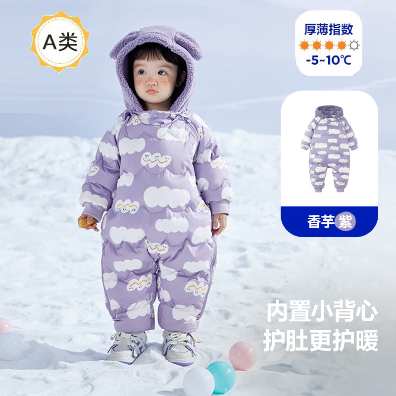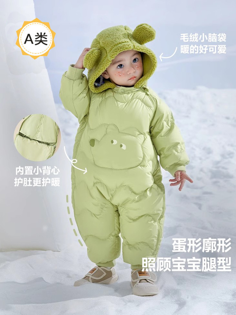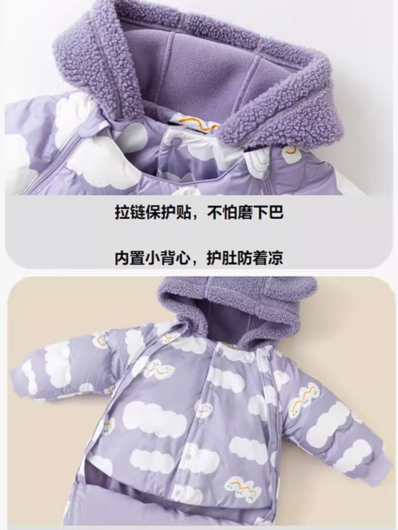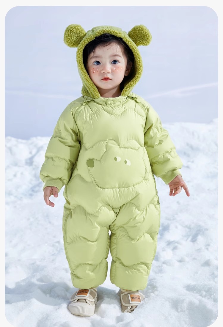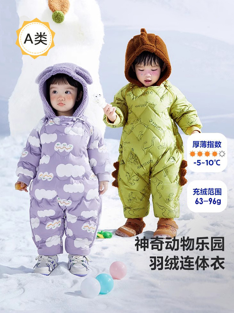 Оптовая продажа детской одежды: комбинезон-пуховик для мальчиков и девочек на осень-зиму 2025 года, утепленный флисом, с защитой живота, для прогулок и игр на улице.