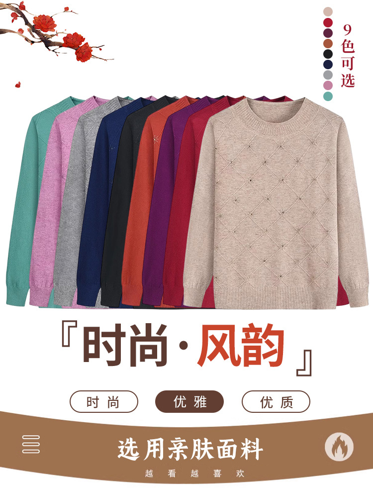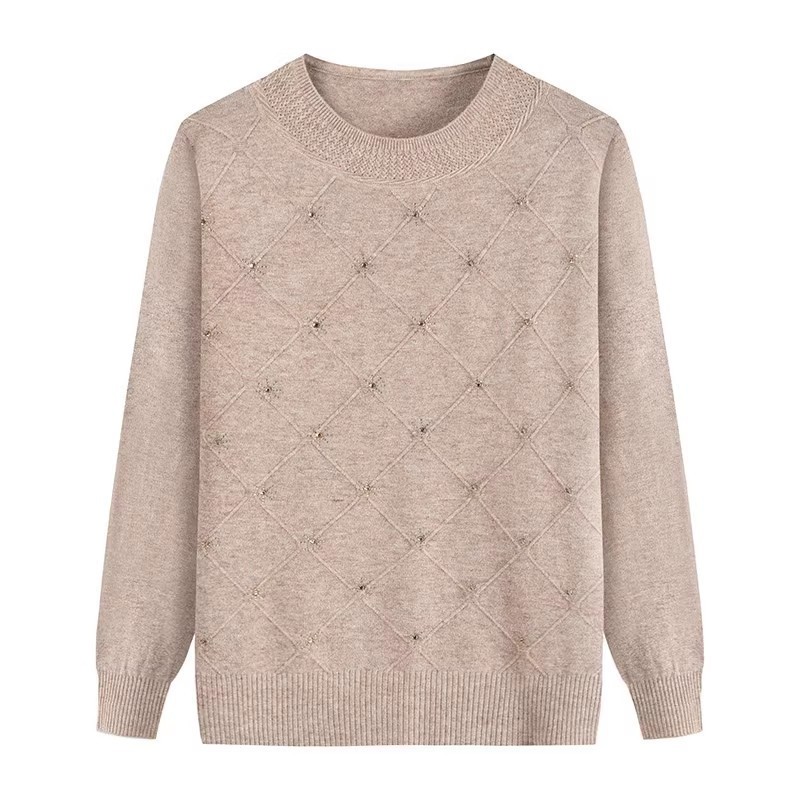 Свитер для женщин среднего возраста от производителя, весенне-осенний, пуловер для мам, элегантный однотонный стильный вязаный топ