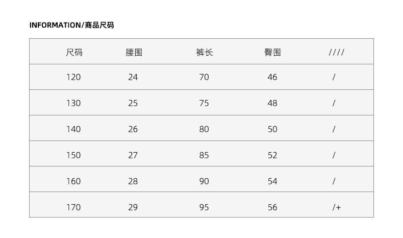 120cm; 130cm; 140cm; 150cm; 160cm; 170cm