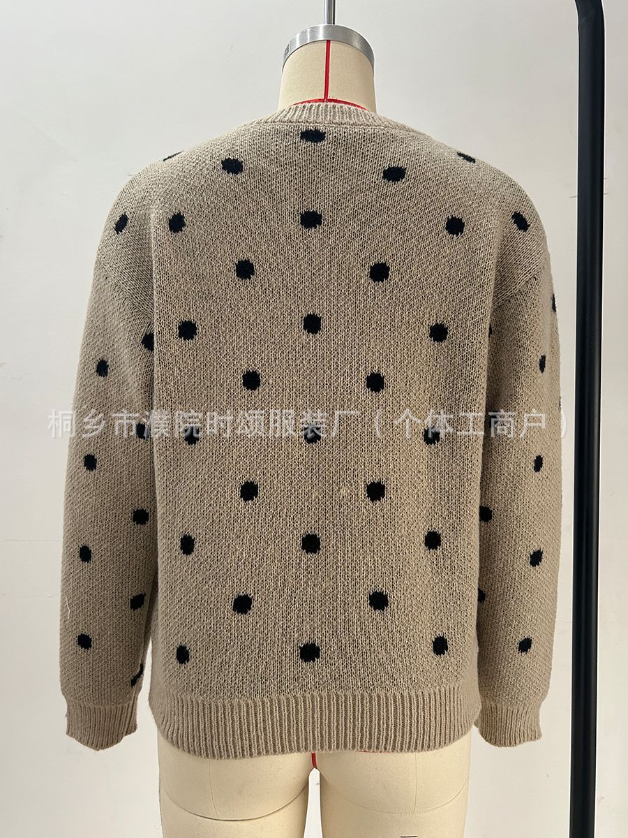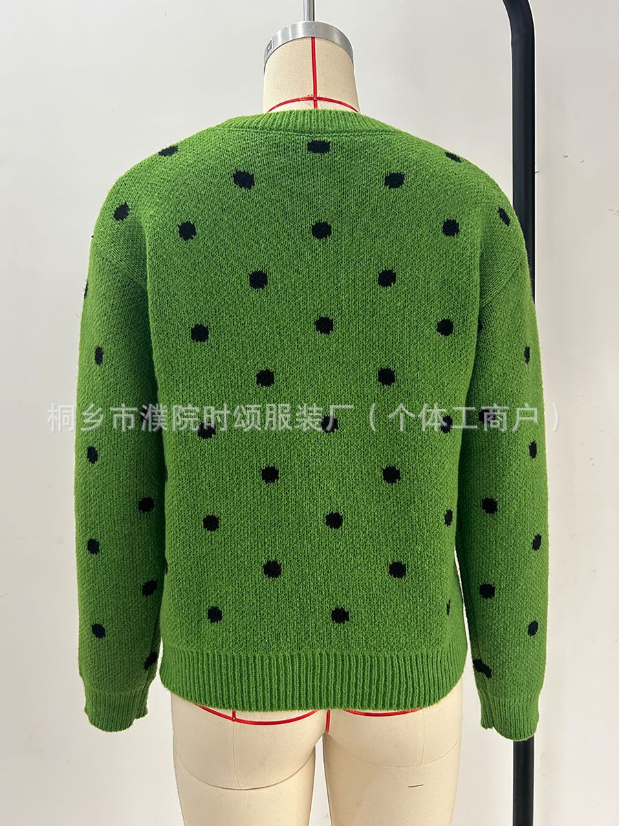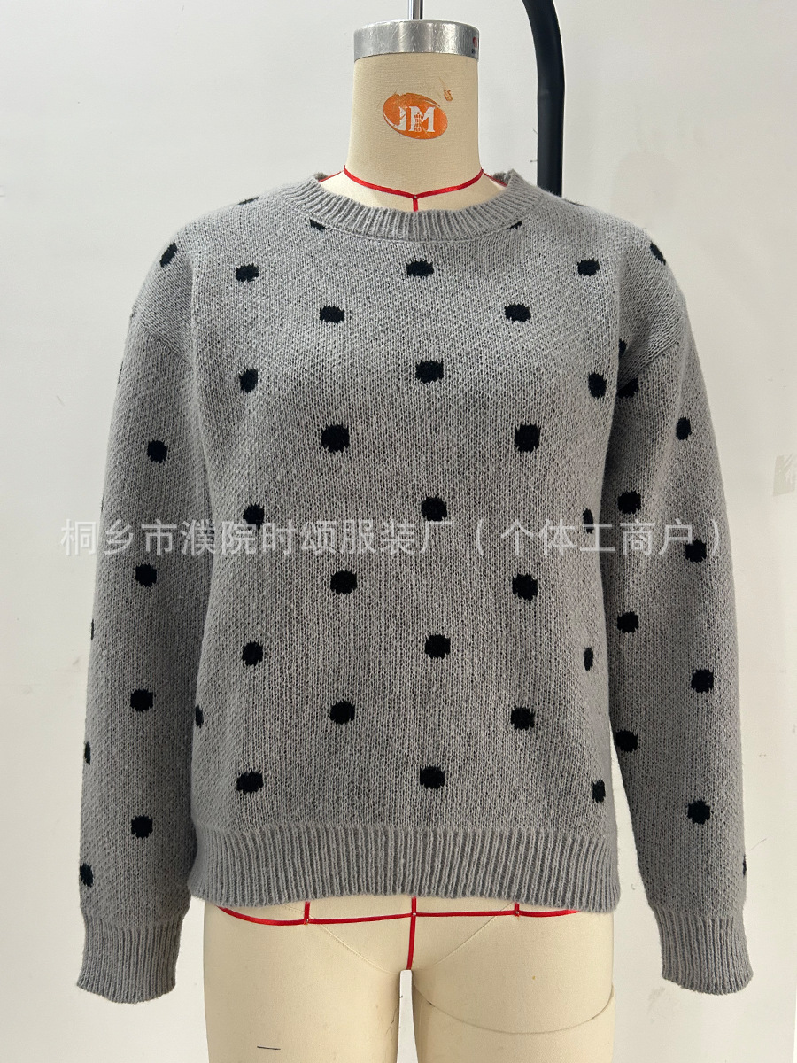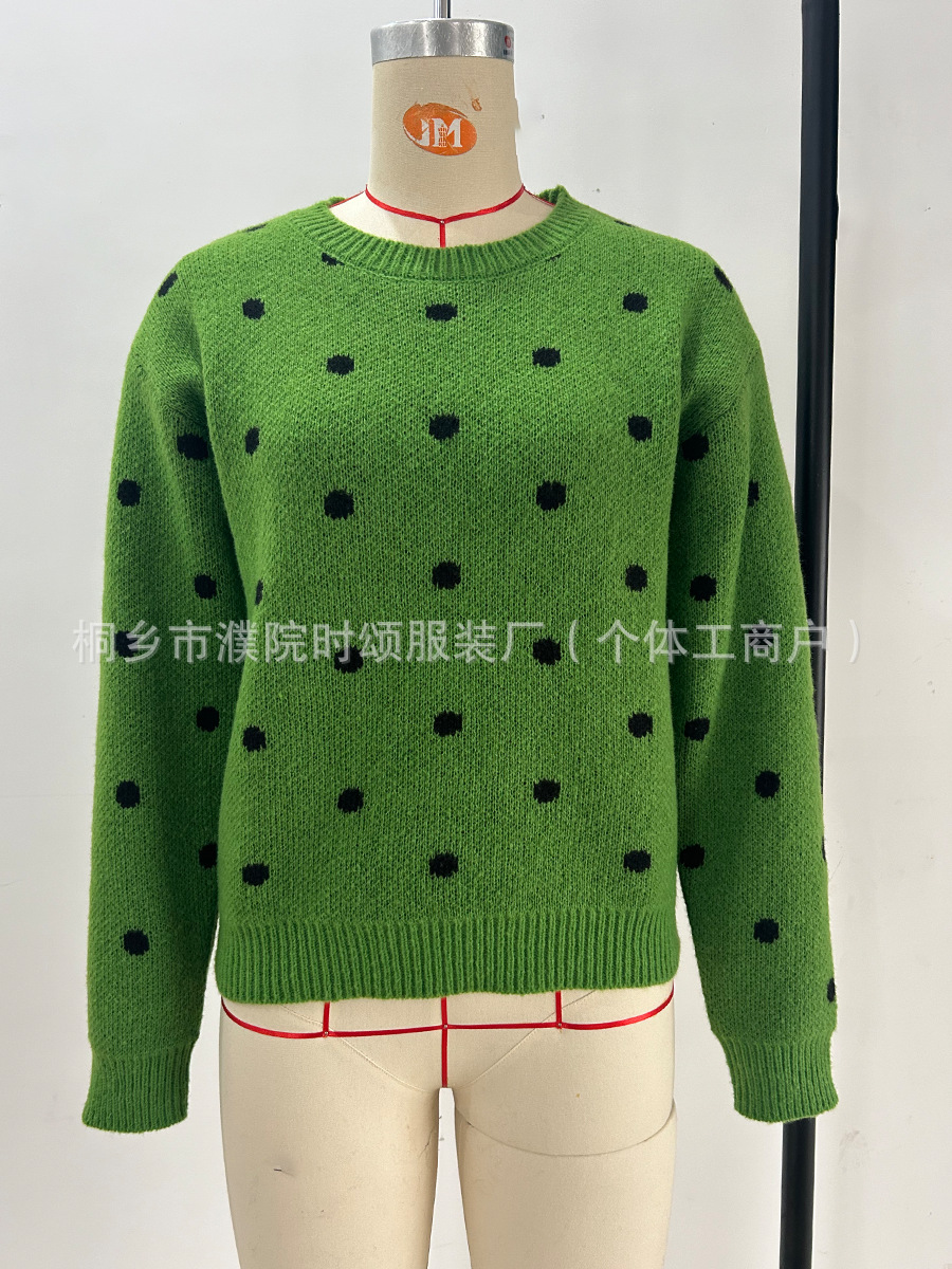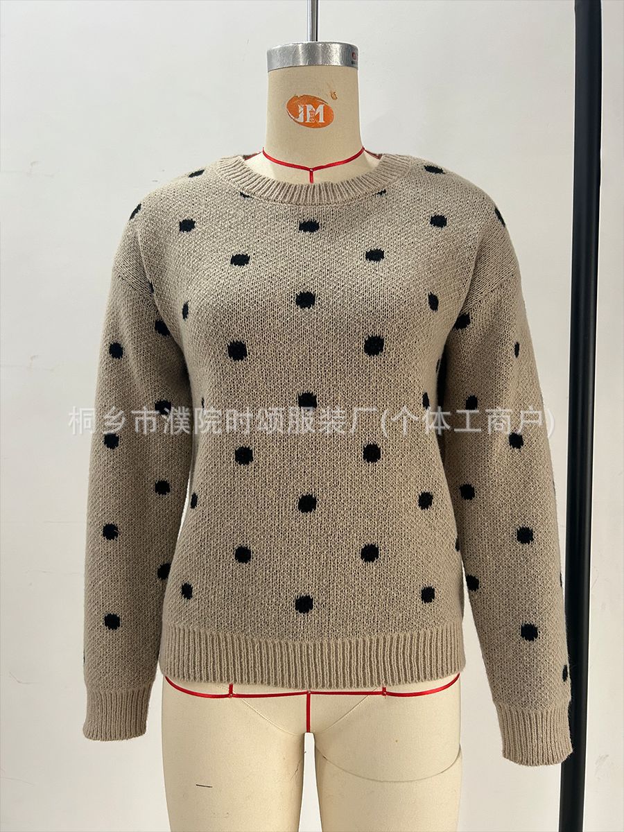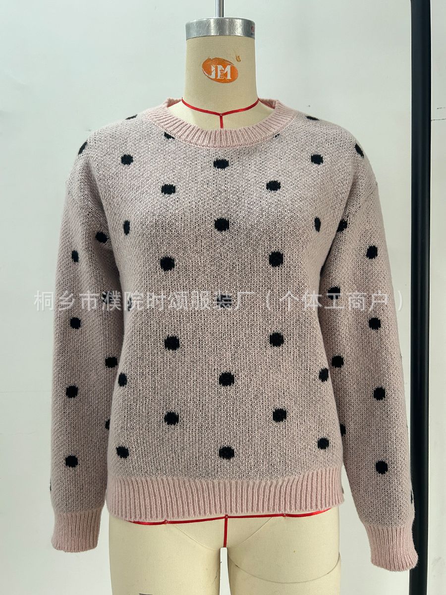 Европейские и американские трансграничные внешнеторговые женские трикотажные изделия, модный пуловер с круглым вырезом и длинными рукавами, трикотажные изделия, женские жаккардовые трикотажные топы в горошек