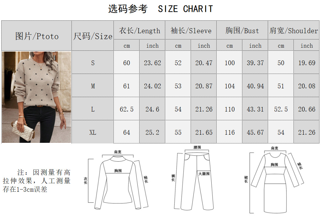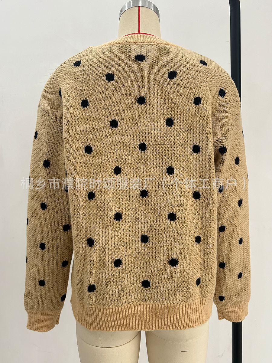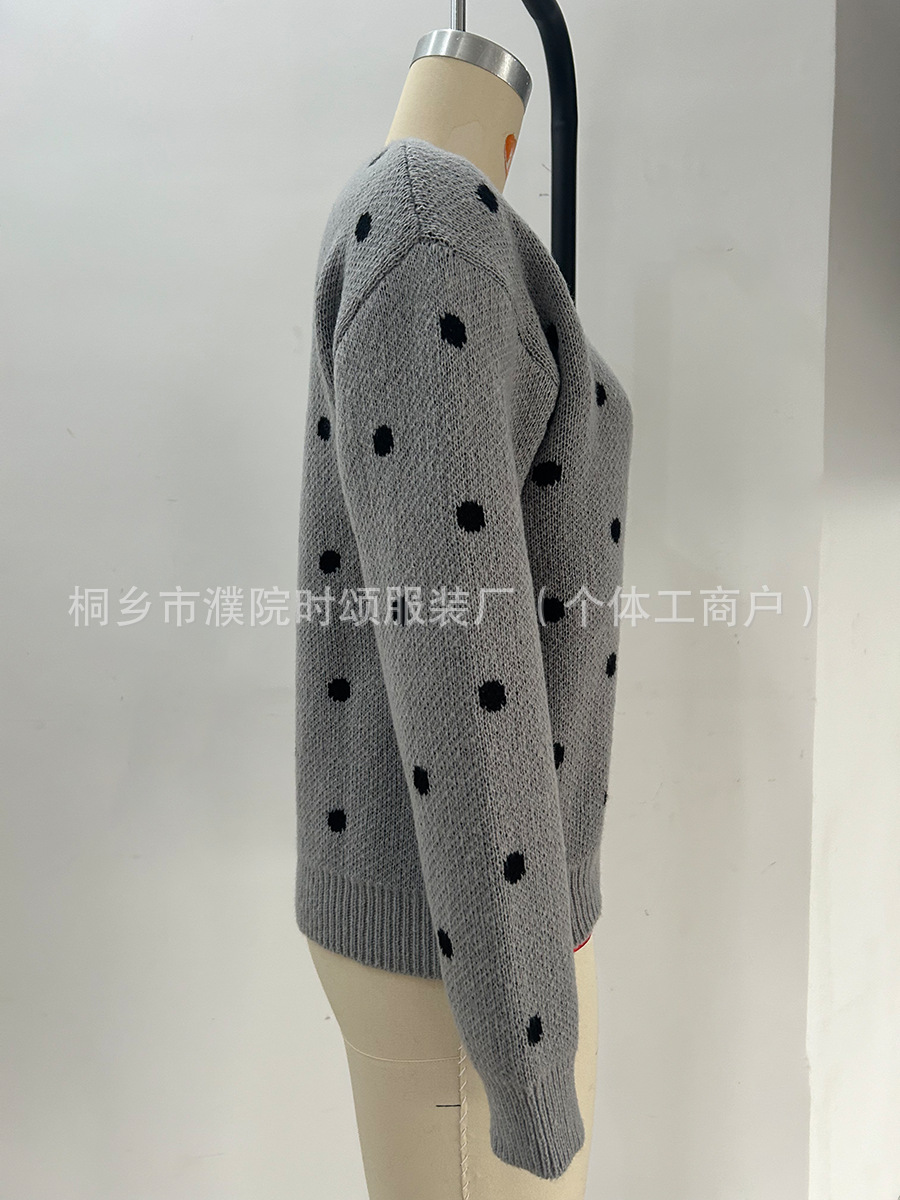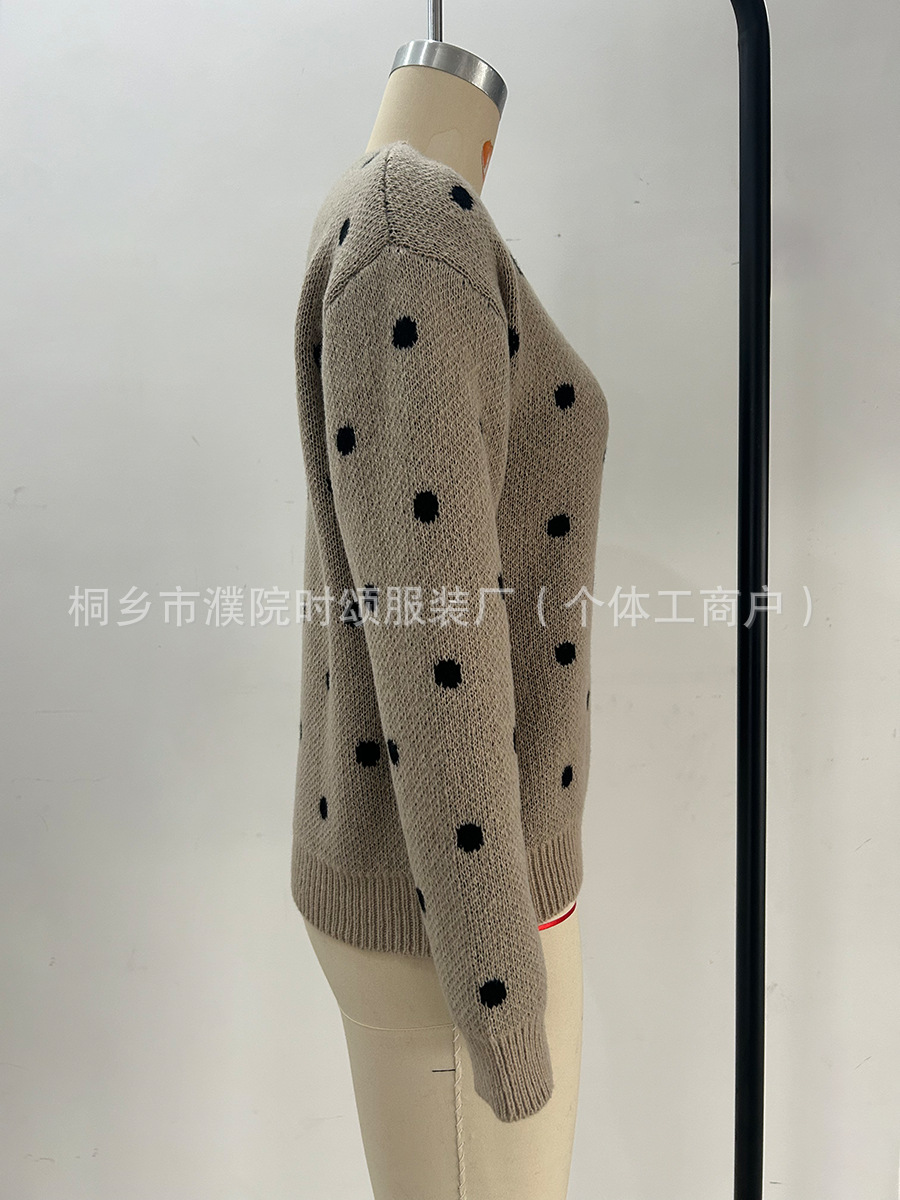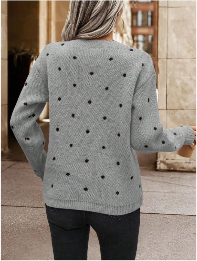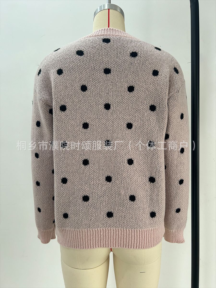 Европейские и американские трансграничные внешнеторговые женские трикотажные изделия, модный пуловер с круглым вырезом и длинными рукавами, трикотажные изделия, женские жаккардовые трикотажные топы в горошек