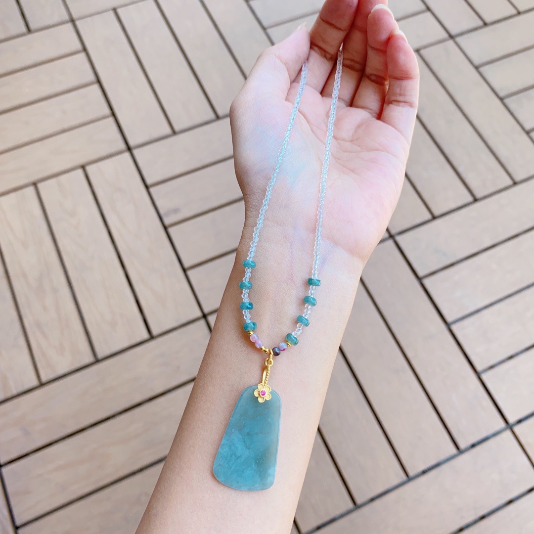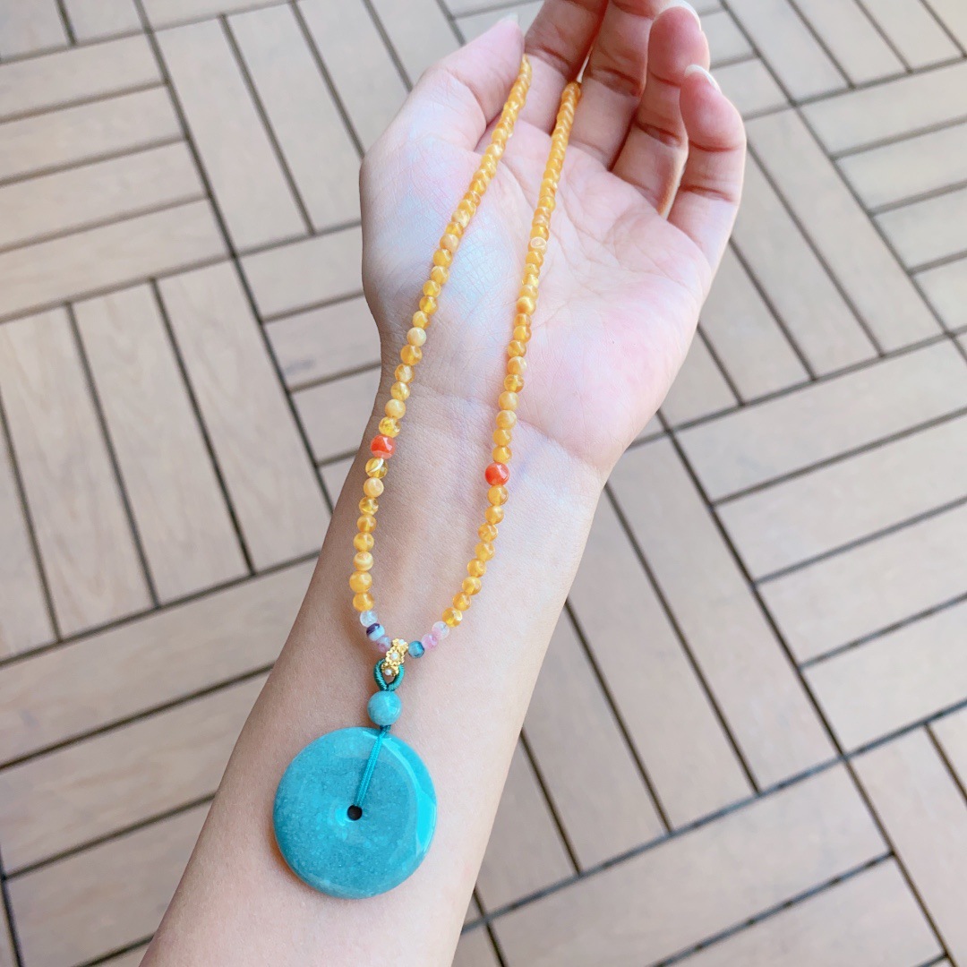 Натуральный кулон ожерелье зеленый сосновый медовый воск изумрудный серебряный камень не выцветает