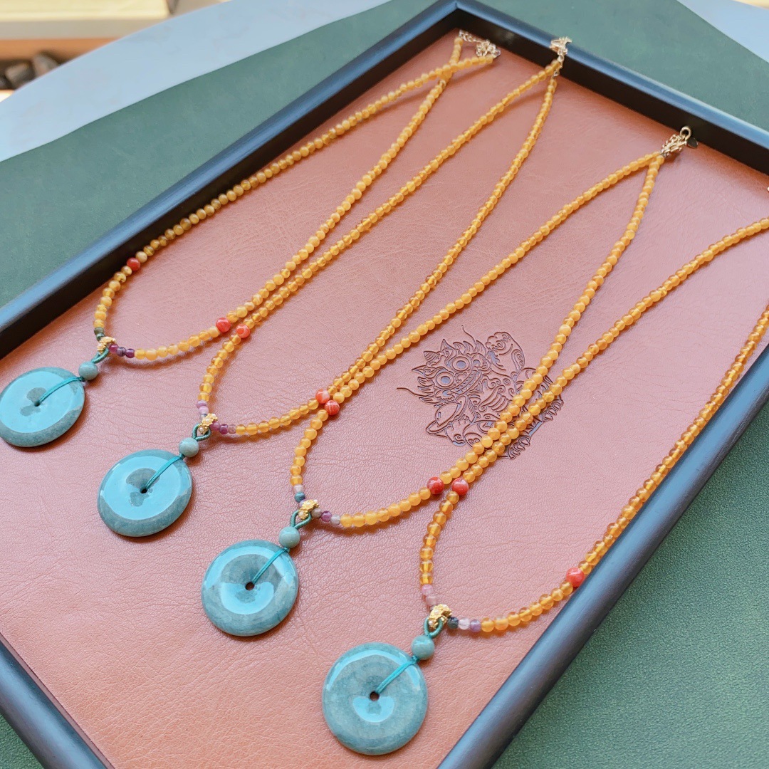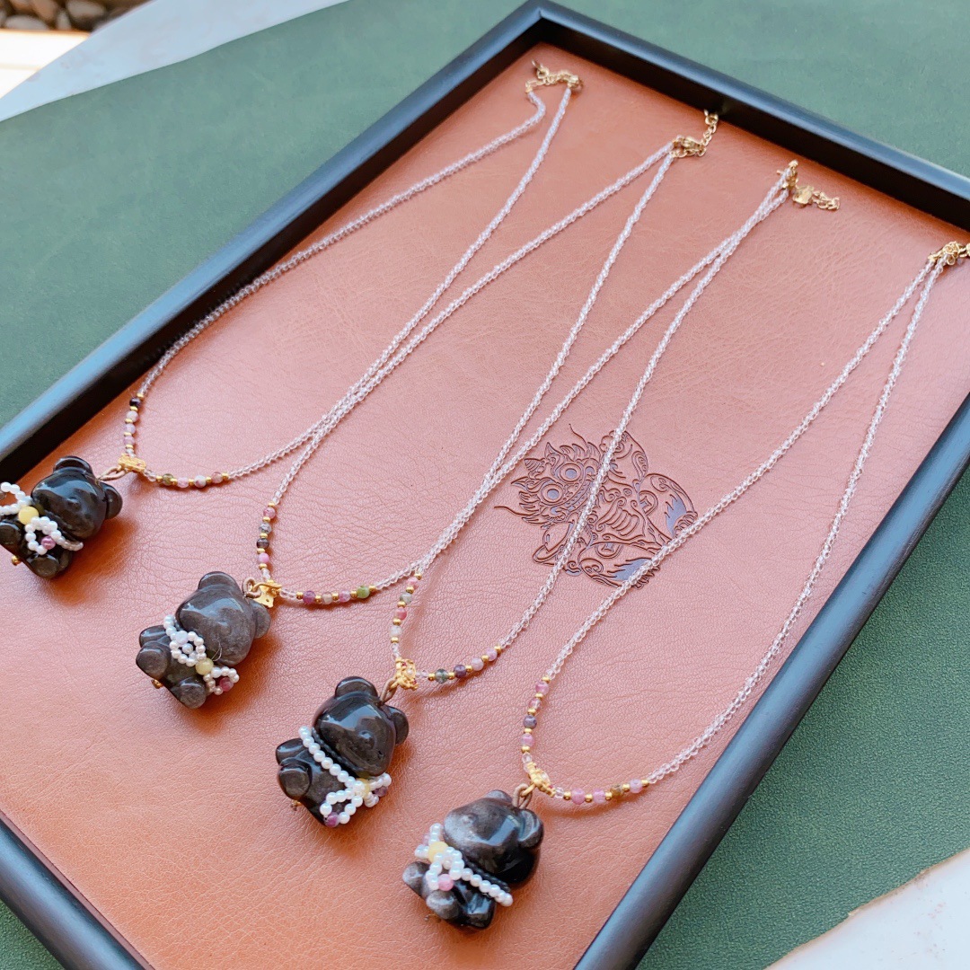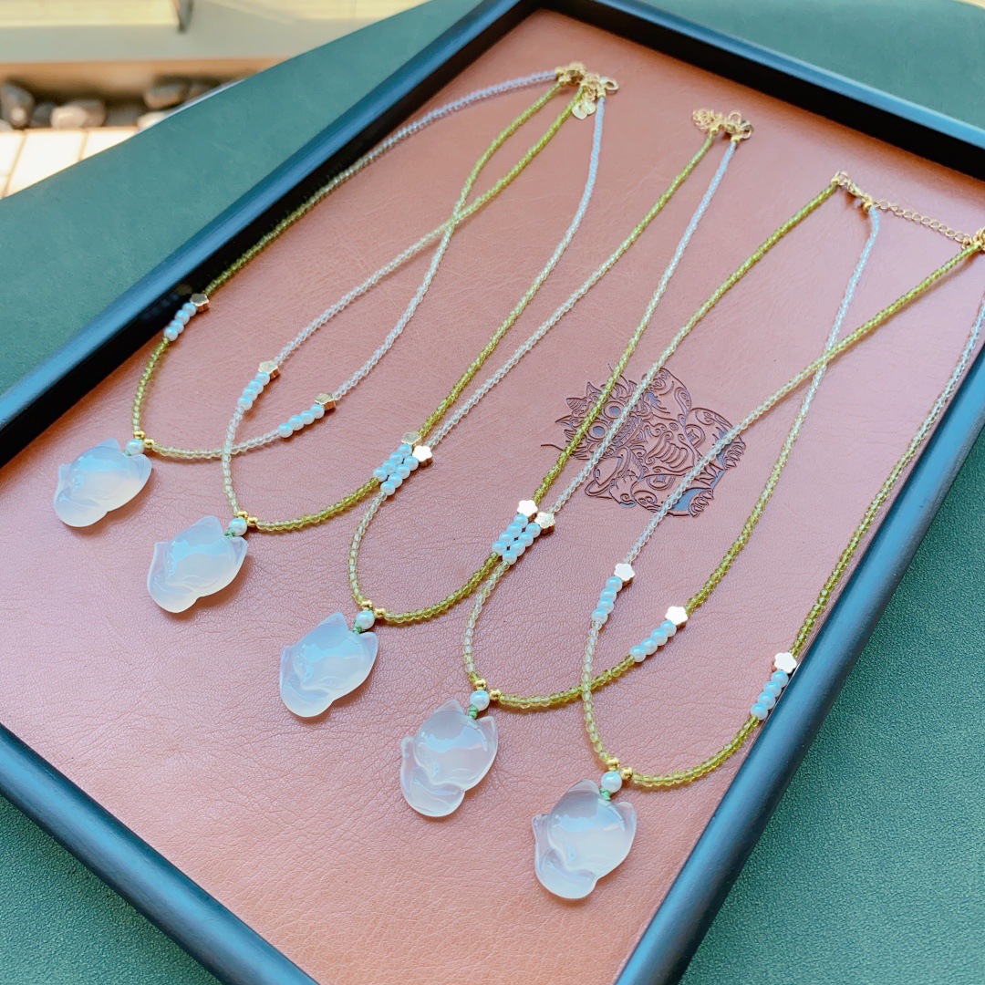 Лисица с большой головкой из белого халцедона, 19мм×22мм; Золотой тигровый глаз Ruyi, 17 мм × 31 мм; Безопасная пряжка из синего нефрита, пчелиный воск, 27 мм × 27 мм.; Медведь из серебряного обсидиана, 18 мм × 25 мм.; Марка насекомых из синего нефрита, 20×33 мм.