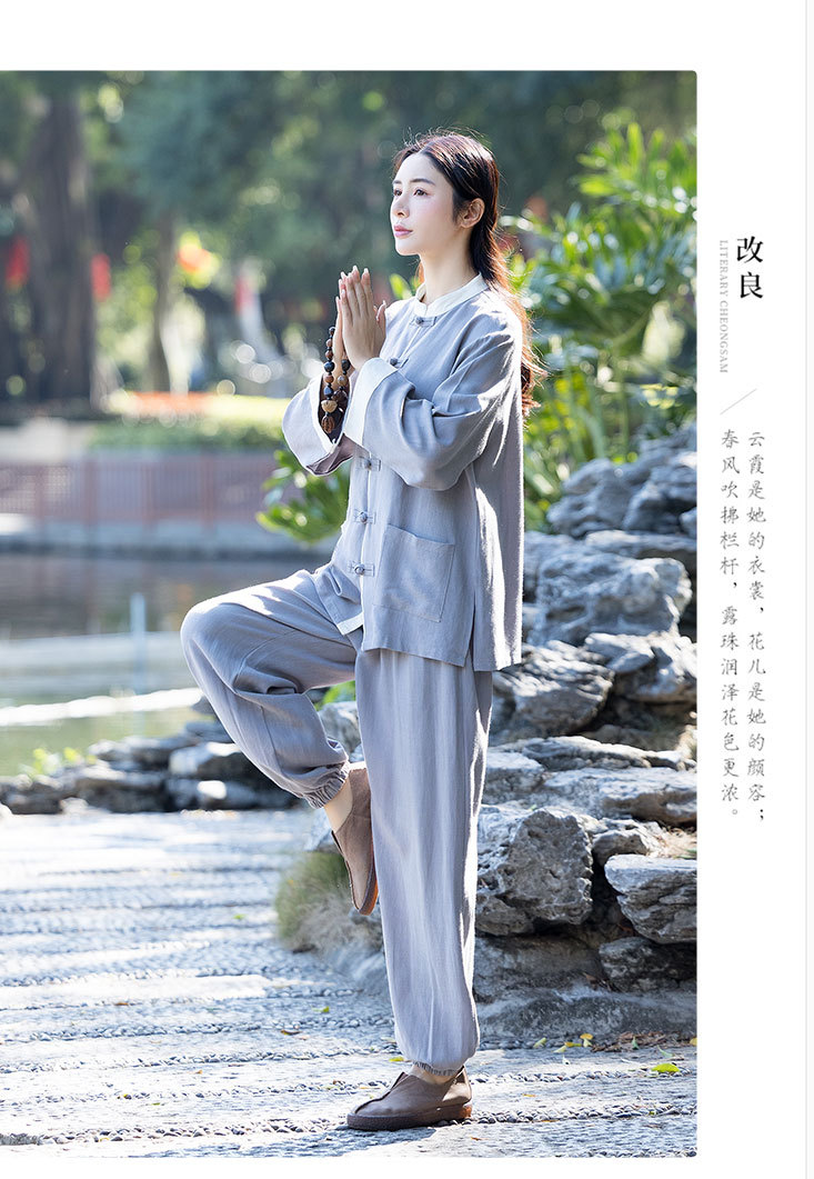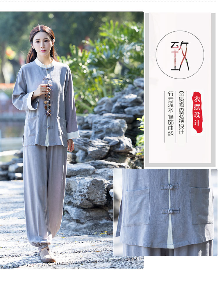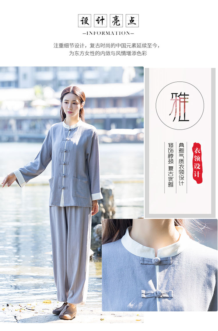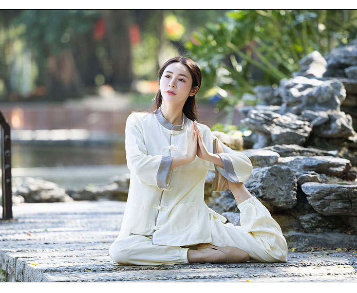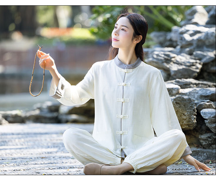 Тайцзи одежда женская весна и осень новая хлопковая и льняная чайная одежда высокого класса