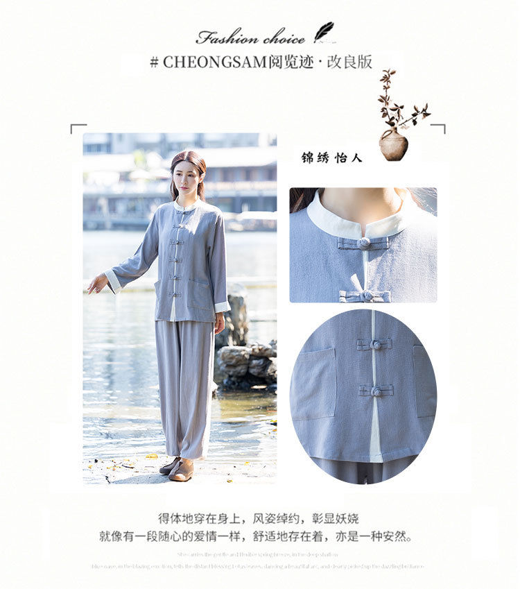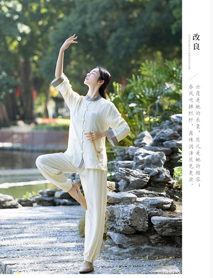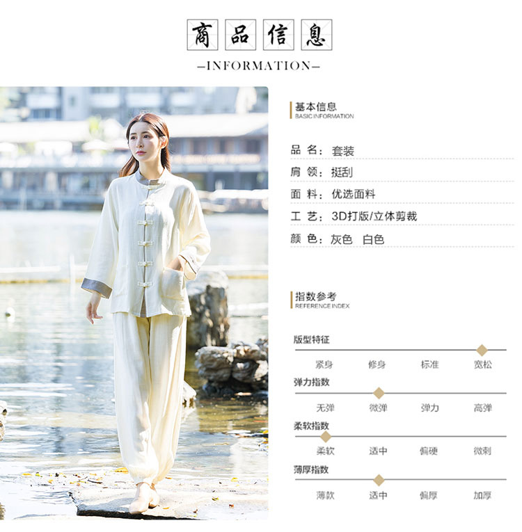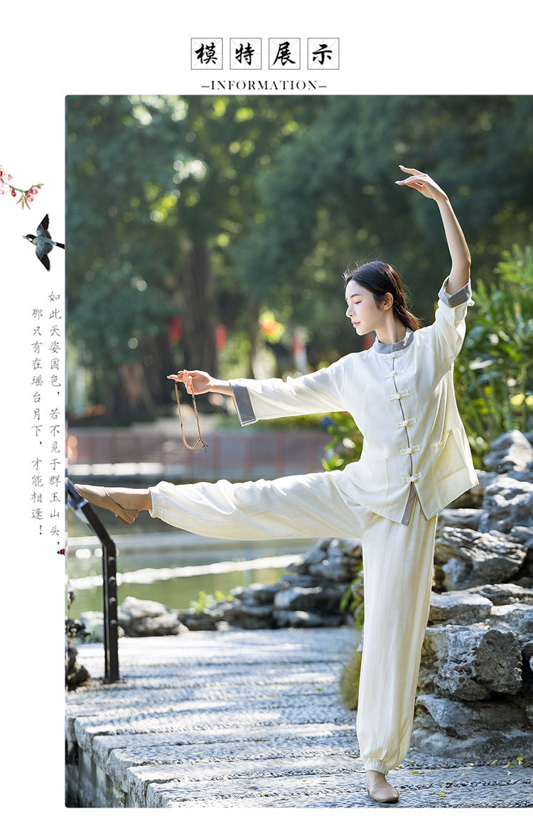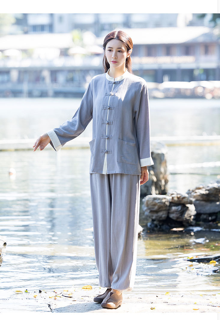 Тайцзи одежда женская весна и осень новая хлопковая и льняная чайная одежда высокого класса