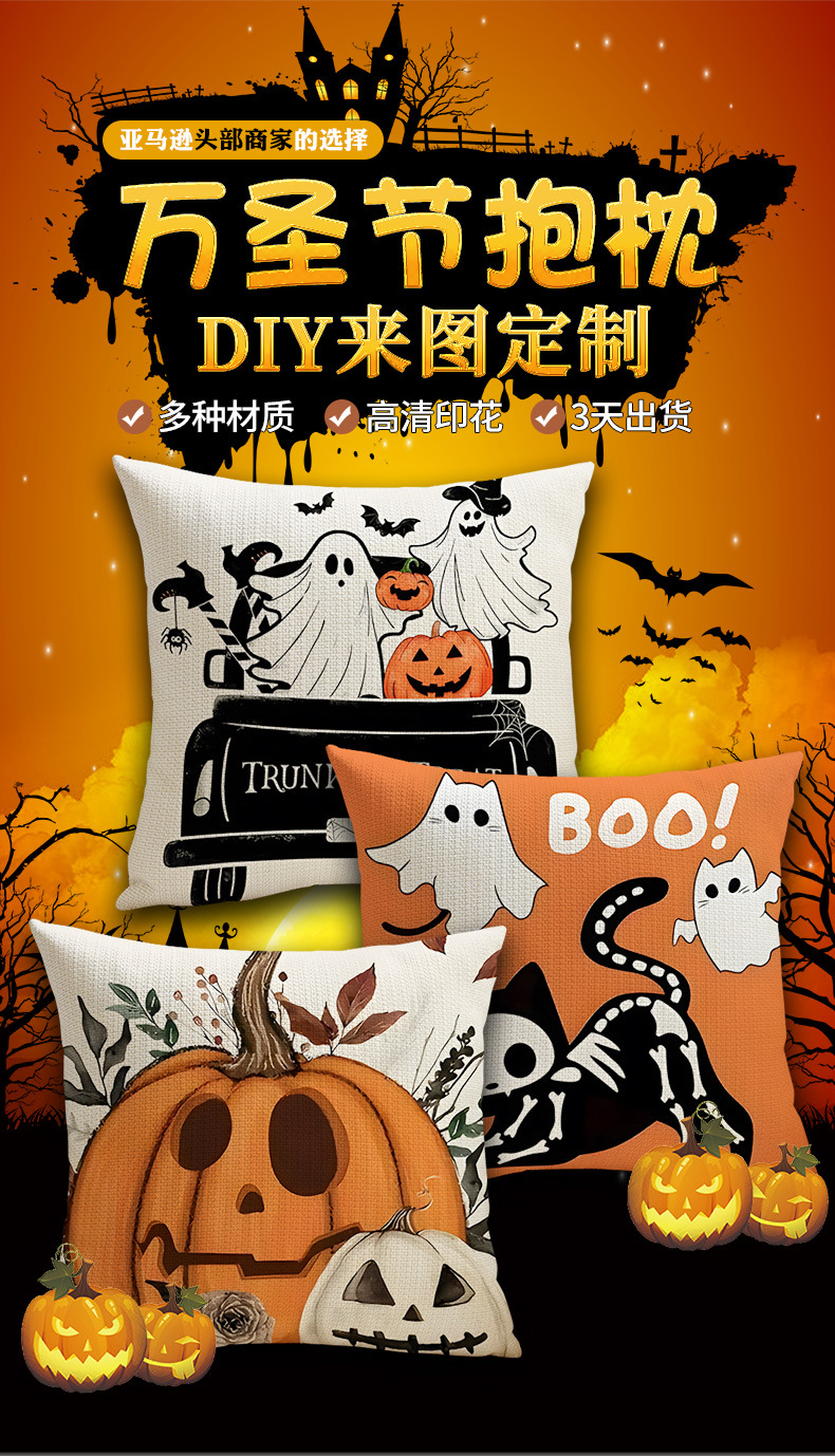 Подушка для Хэллоуина, популярная на Amazon, из плюшевого льна, квадратная наволочка, удобная подушка, оптовая продажа, поясничная поддержка.