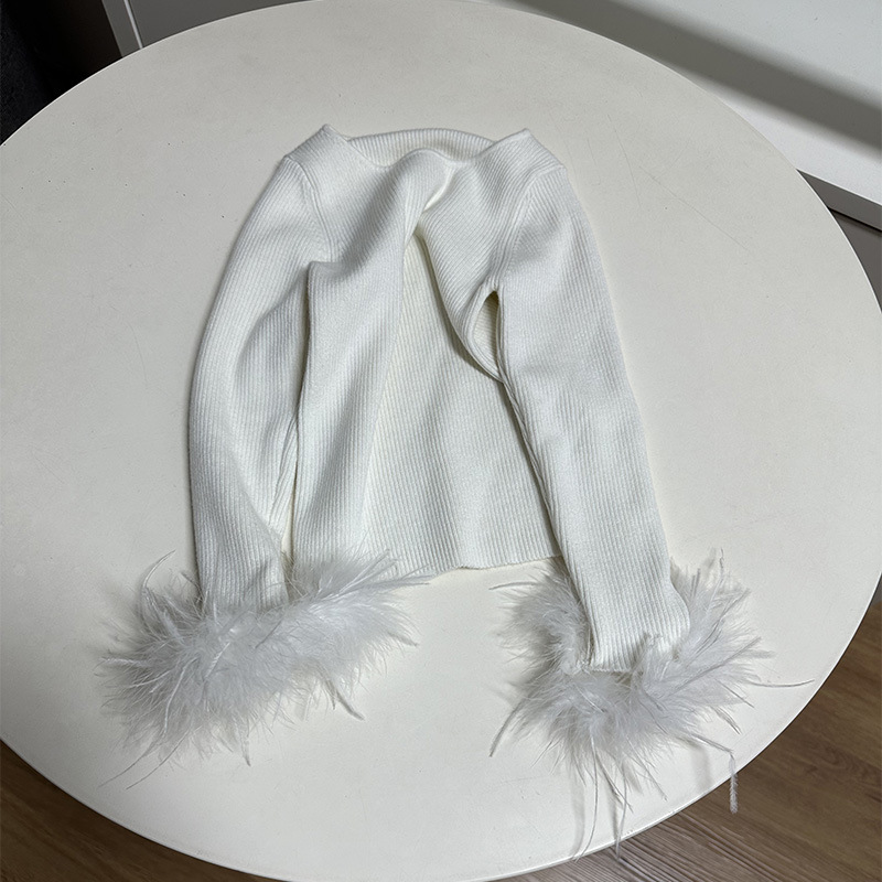 2024 новый стиль девушки страусиное перо манжеты рубашка с круглым вырезом ямы трикотаж осенний и зимний свитер с длинными рукавами