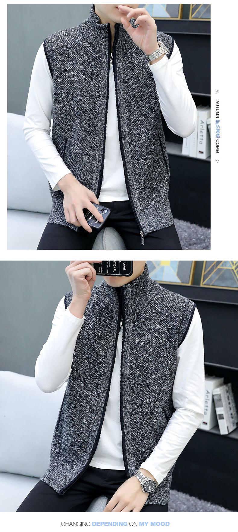 Внешняя торговля вязаный свитер жилет мужской воротник без рукавов свитер