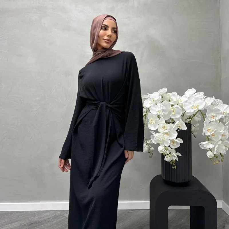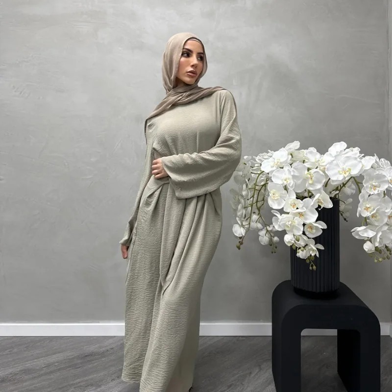 2024 Трансграничные мусульманские дамы достойное платье Дубай Абая сплошной цвет молитвенный костюм моды Турция