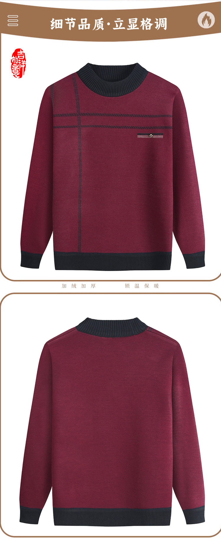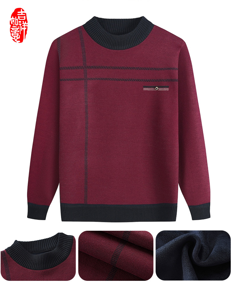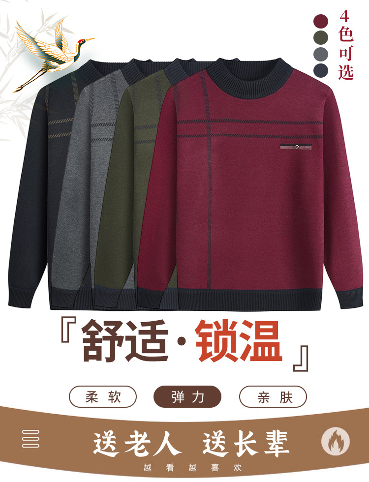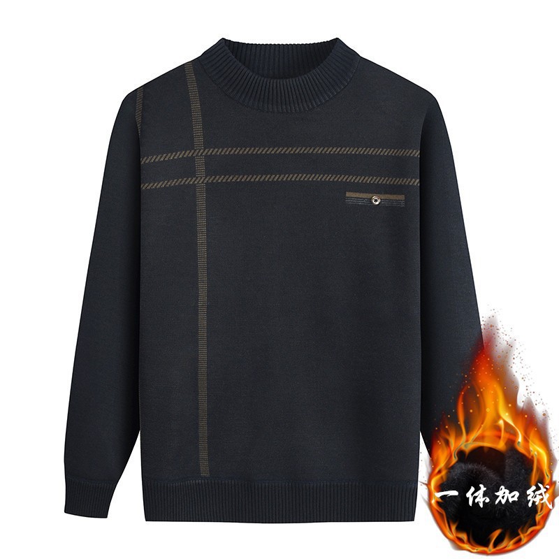 Распродажа: Мужской свитер на флисовой подкладке для пожилых людей, теплый пуловер для дедушки на осень и зиму, вязаный базовый слой для пожилых.
