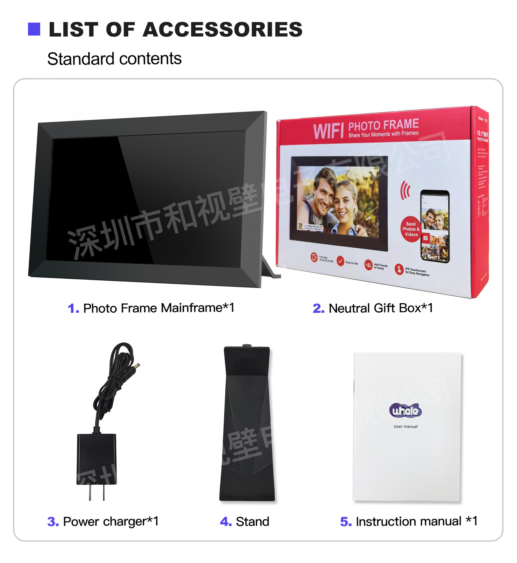详情:使用说明书:1本;适配器:电源适配器5V/2A;支架:横竖通用支架