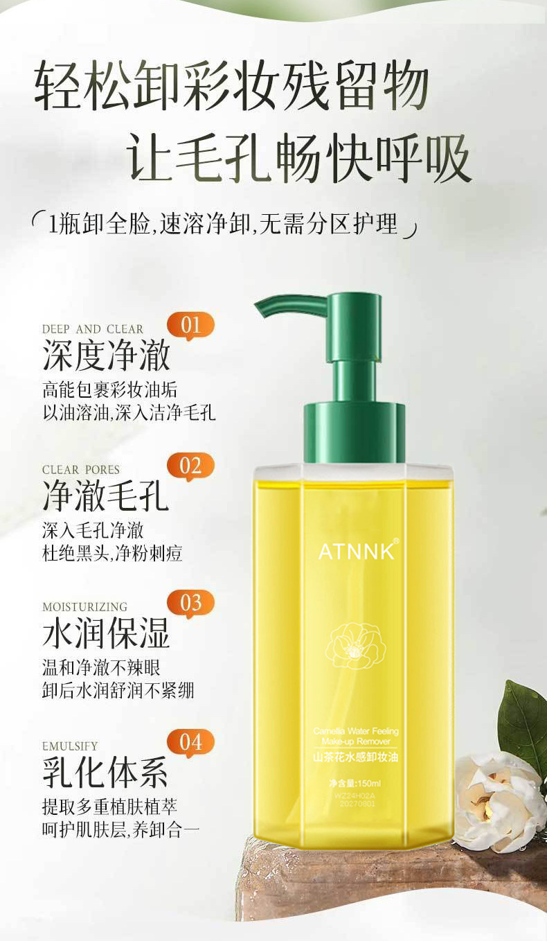 Очищающее масло ATNNNK Camellia для глубокого очищения кожи вокруг глаз, губ и лица. Трехфункциональное средство для удаления черных точек. Мягкое удаление черных точек.