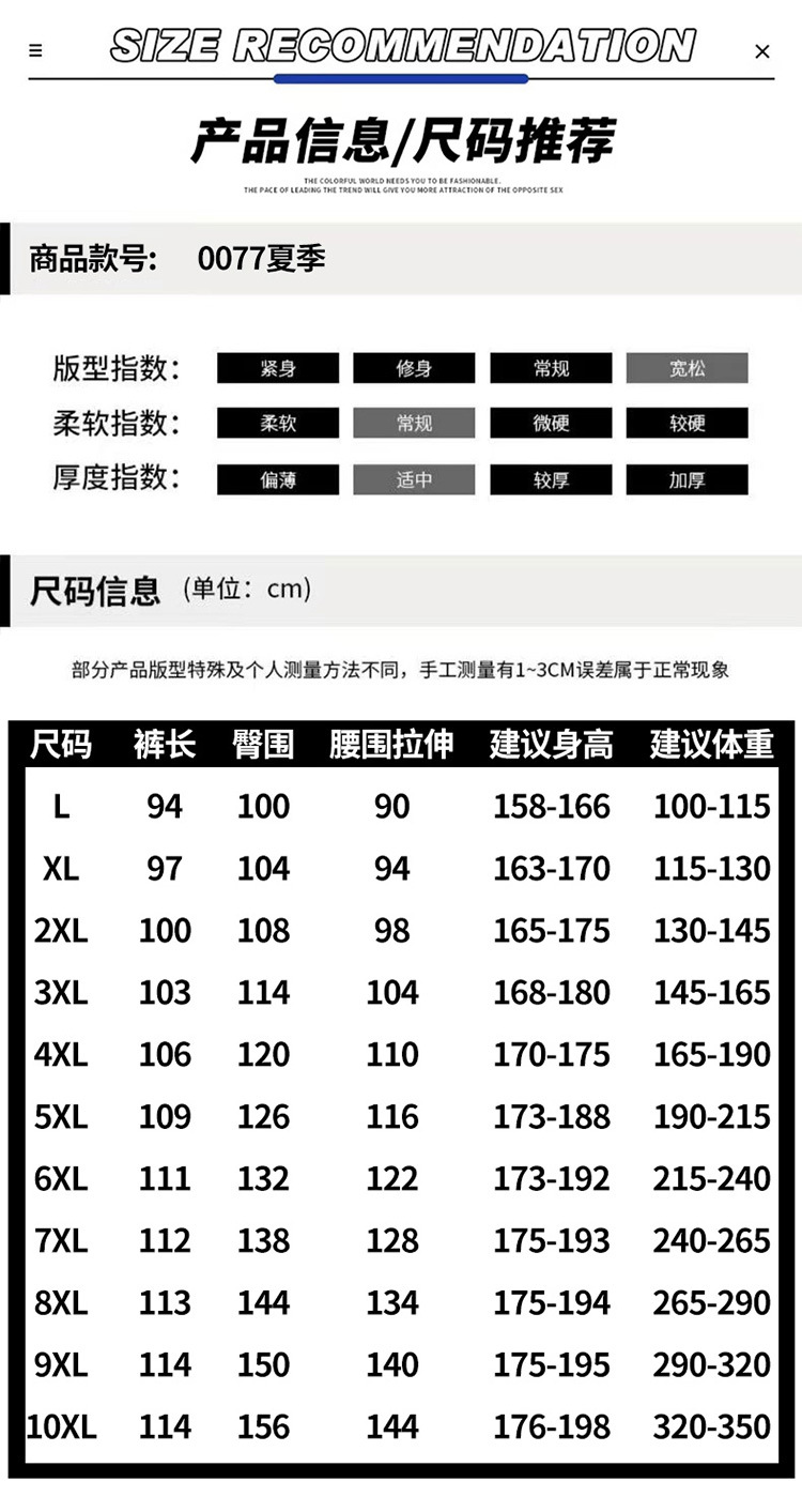 Л【 50-60kg 】; ХЛ【 60-67.5kg 】; 2XL【 67.5-75kg 】; 3XL【 75-82.5kg 】; 4XL【 82.5-95kg 】; 5XL【 95-107.5kg 】; 6XL【 107.5-120kg 】; 7XL【 120-132.5kg 】; 8XL【 132.5-145kg 】; 9XL【 145-160kg 】; 10XL【 160-175kg 】