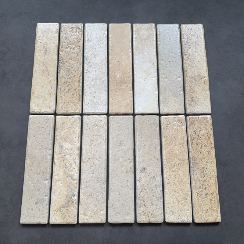 Бежевые плитки под известняк, имитация травертина, для отделки стен и пола в магазинах одежды, кафе, барных стоек и фасадов.