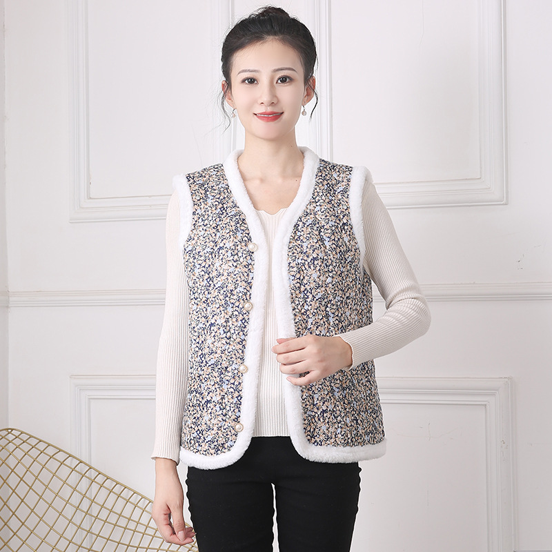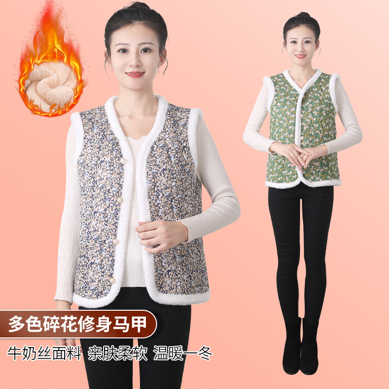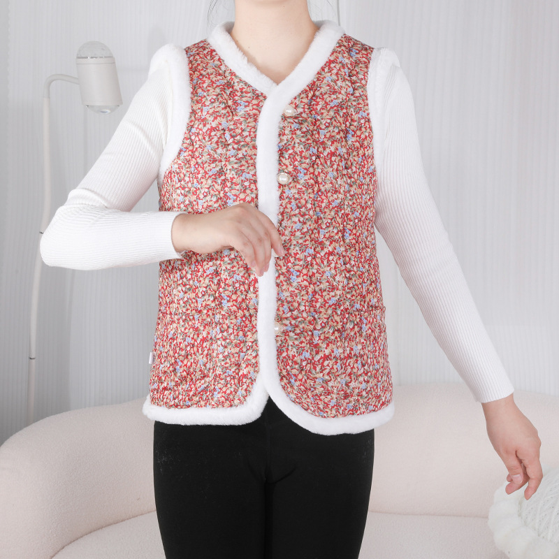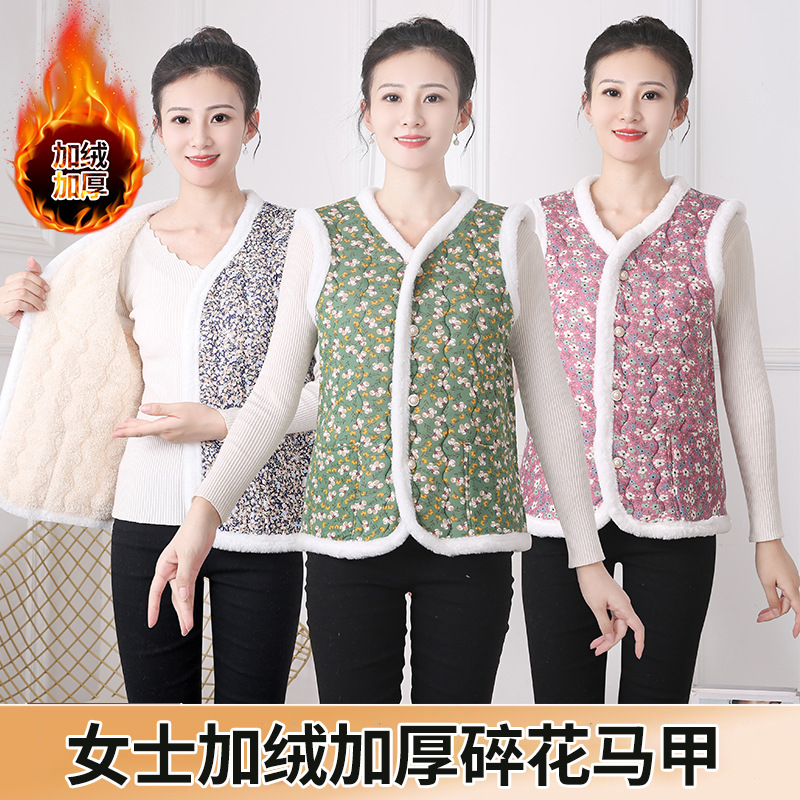 Зимний модный хлопковый жилет для женщин среднего и старшего возраста с флисовой подкладкой, облегающего кроя, теплая верхняя одежда для зимы.