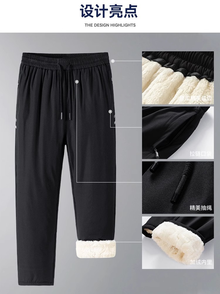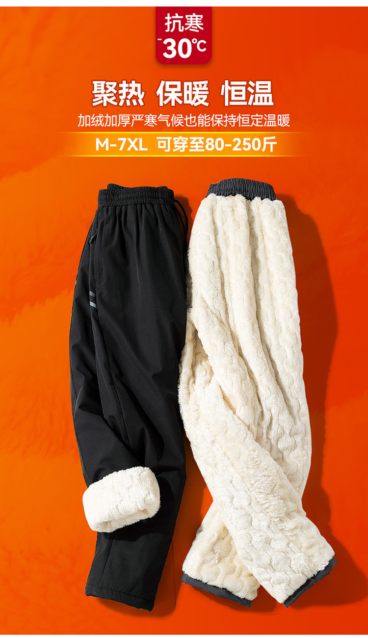 Мужские зимние прямые брюки-джоггеры на флисовой подкладке, утолщенные и теплые, повседневные водонепроницаемые брюки большого размера.