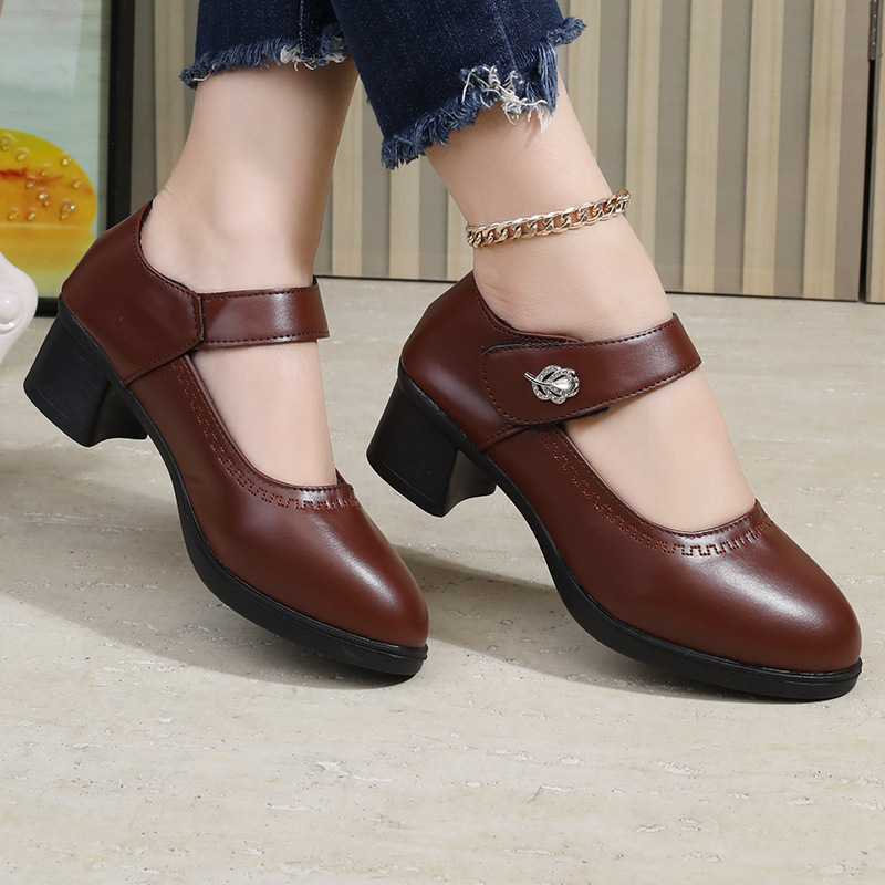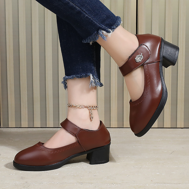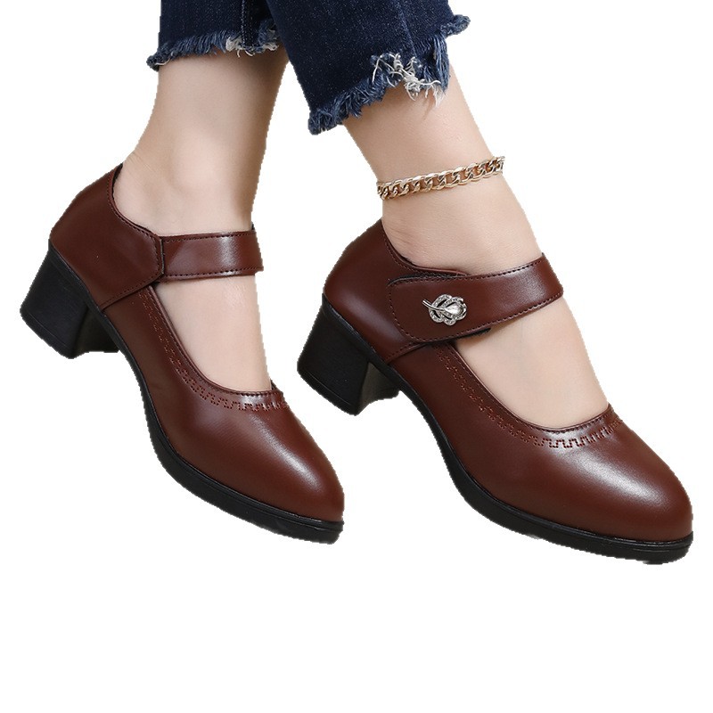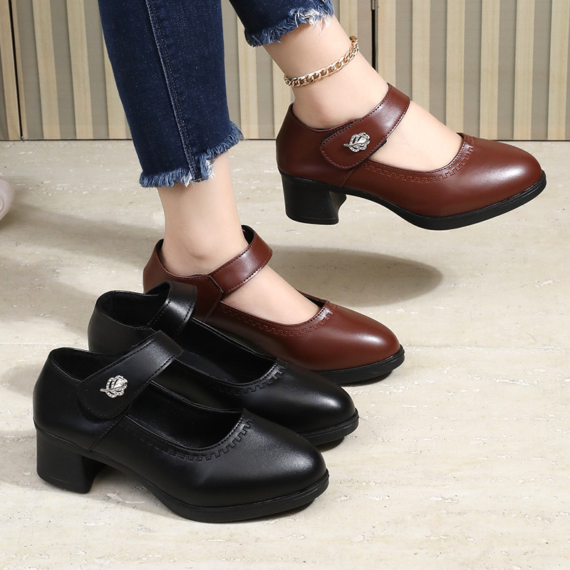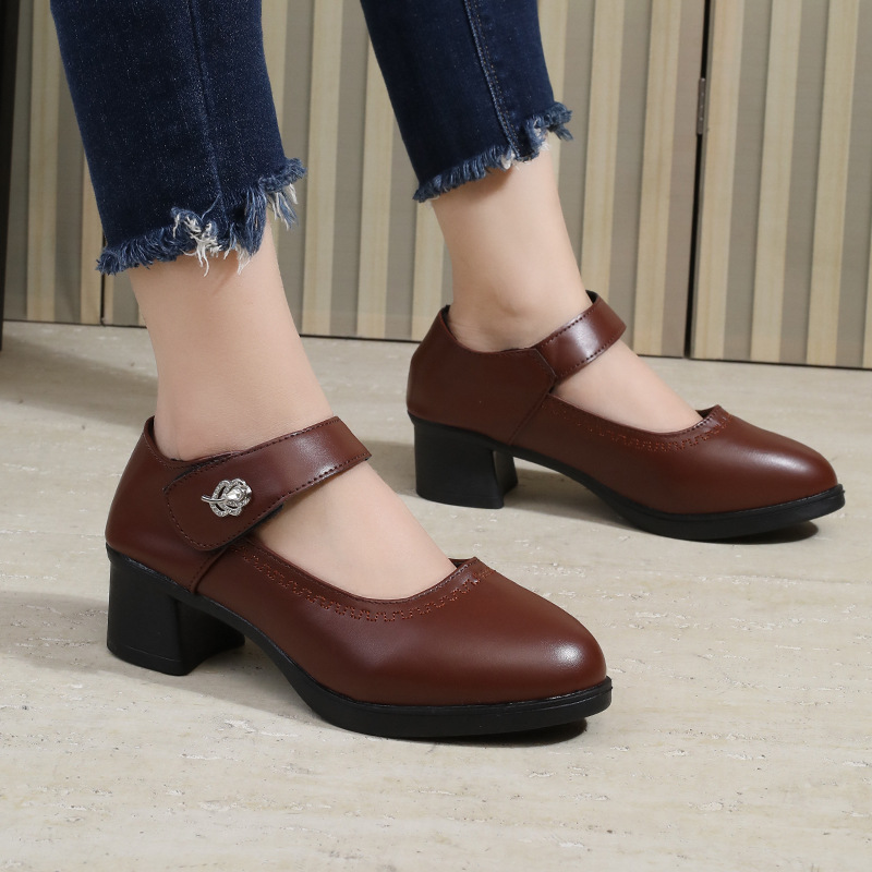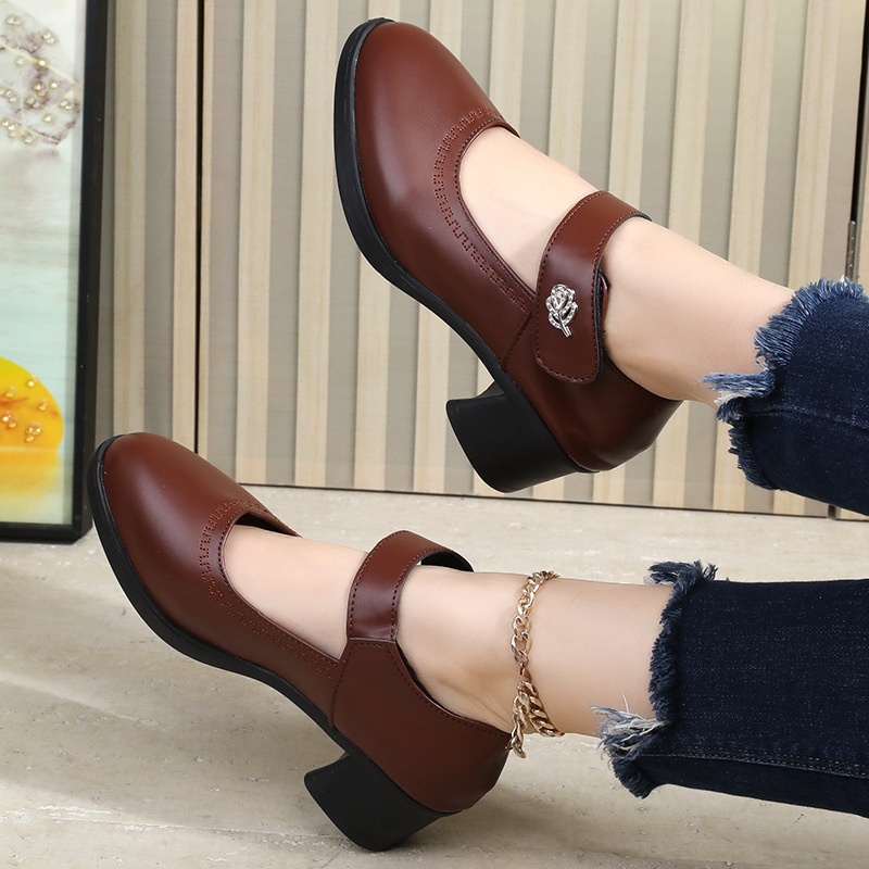 Внешняя торговля, натуральная мягкая кожа, мягкая подошва, женские туфли на плоской подошве, новинка 2025 года, туфли для мамы на среднем каблуке, туфли на плоской подошве с круглым носком, маленькие кожаные туфли в корейском стиле