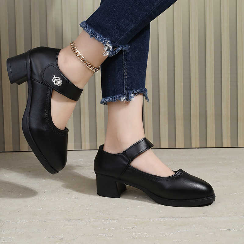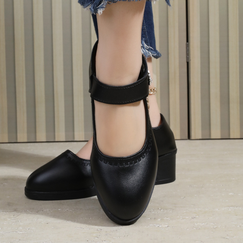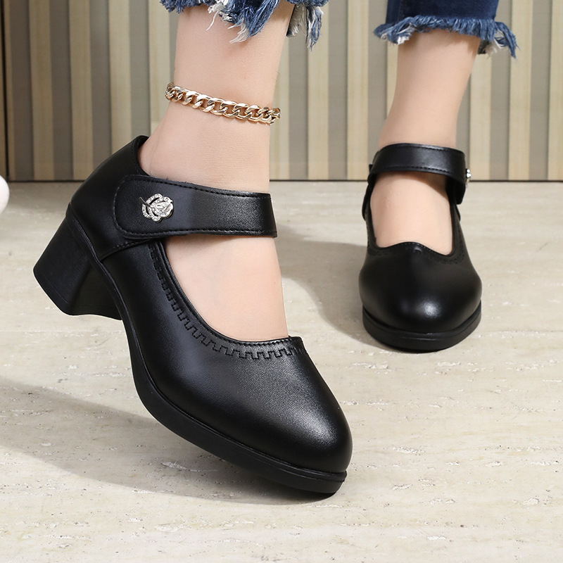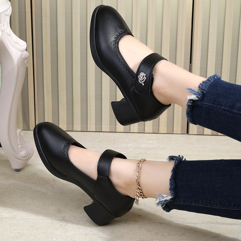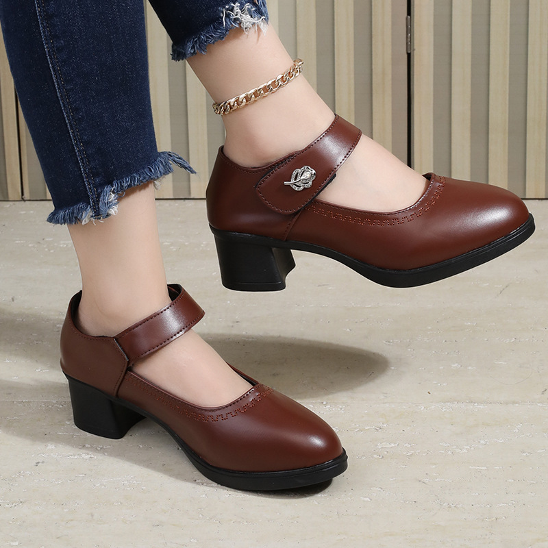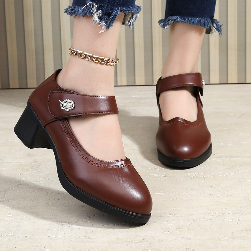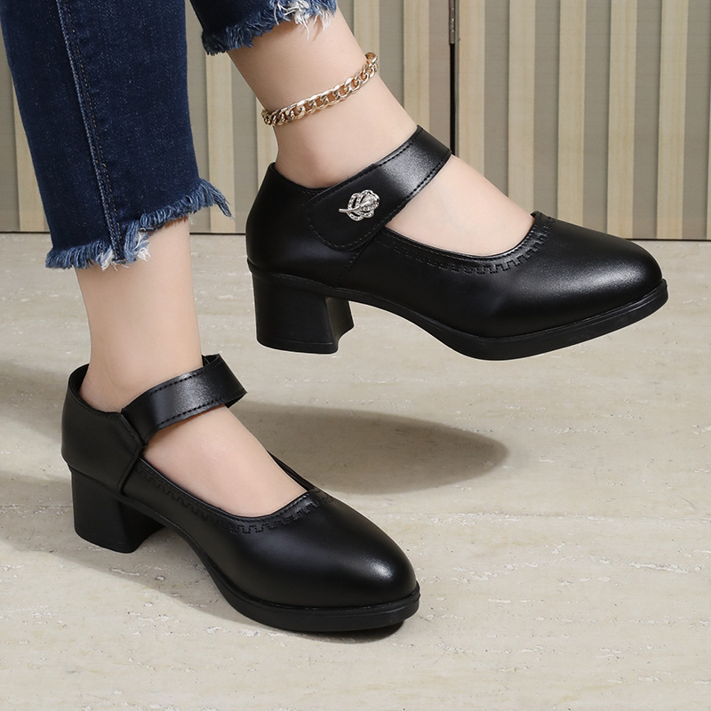 Внешняя торговля, натуральная мягкая кожа, мягкая подошва, женские туфли на плоской подошве, новинка 2025 года, туфли для мамы на среднем каблуке, туфли на плоской подошве с круглым носком, маленькие кожаные туфли в корейском стиле