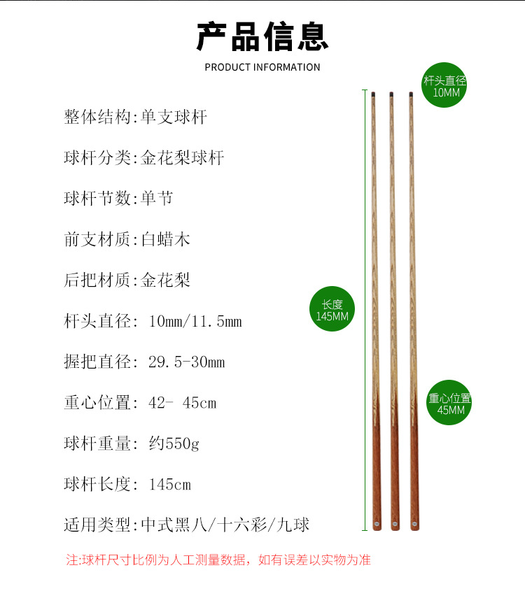 Профессиональный бильярдный кий с маленьким утяжеленным наконечником, специально разработанный для китайского бильярда (восьмерка), высококачественный кий для бильярдных залов, аксессуары для бильярда.