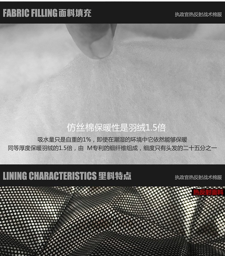 Внешний слой представляет собой нейлон, наполненный хлопком из искусственного шелка, а внутренний слой является светоотражающим.