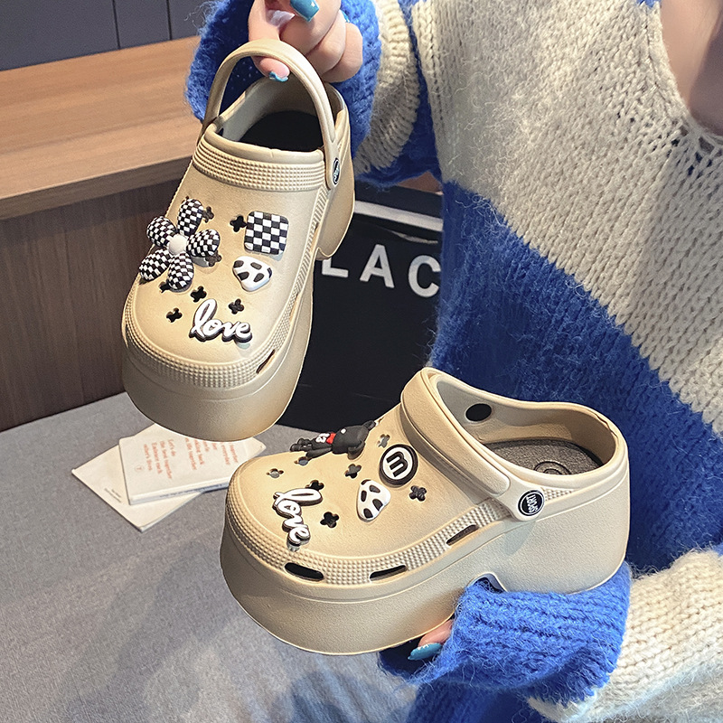 Туфли с толстой подошвой для женщин 2024 новый нескользящий пляж увеличивает EVA Baotou сандалии тапочки для женщин летом