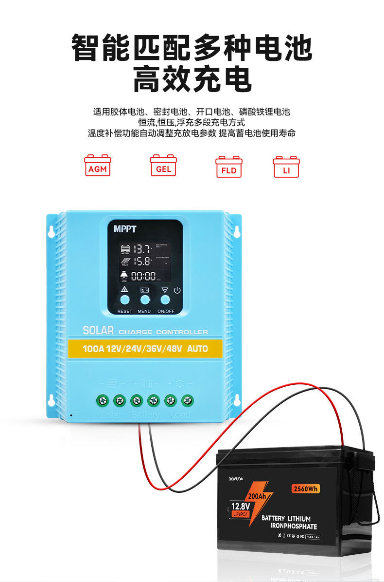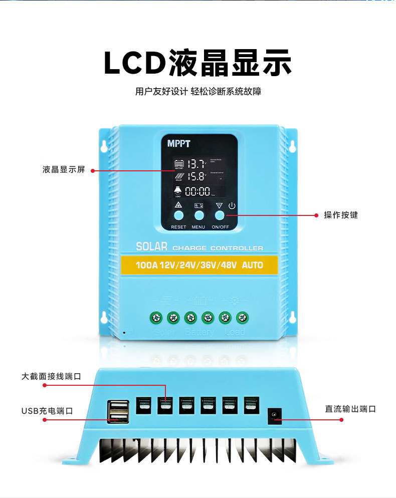 Солнечный контроллер MPPT автоматический универсал распознавания 12V24V36V48V точный контроллер времени управления