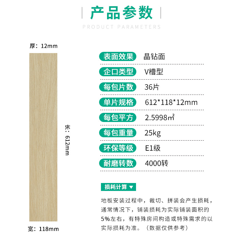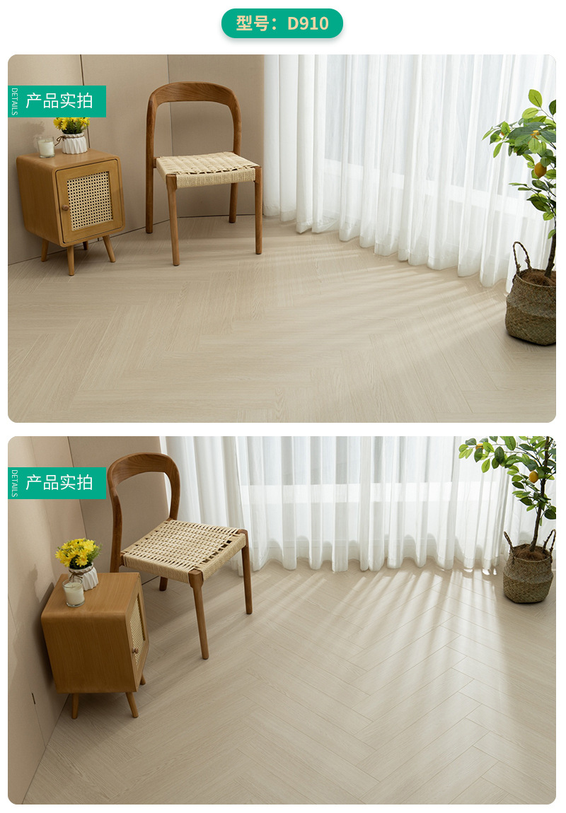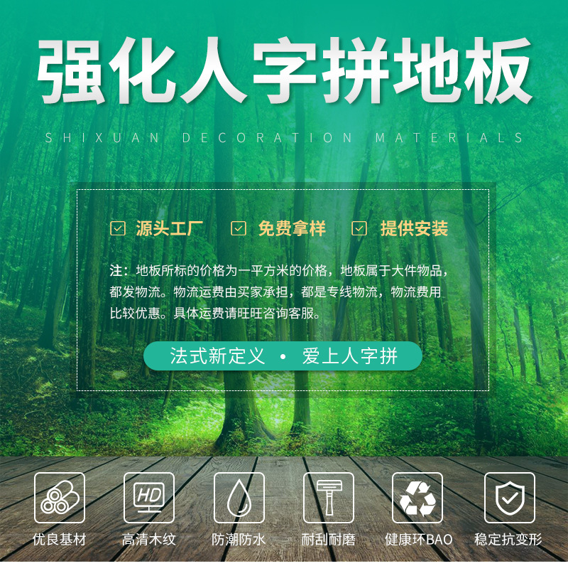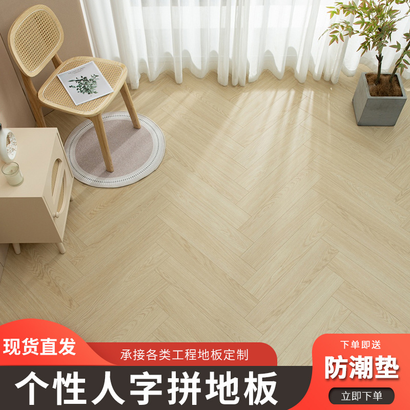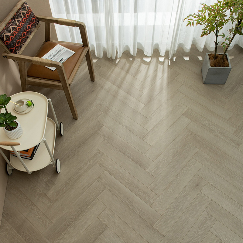 12-миллиметровый кремовый однотонный усиленный паркет "елочка" класса Е1, французский персонализированный замковый деревянный пол для дома