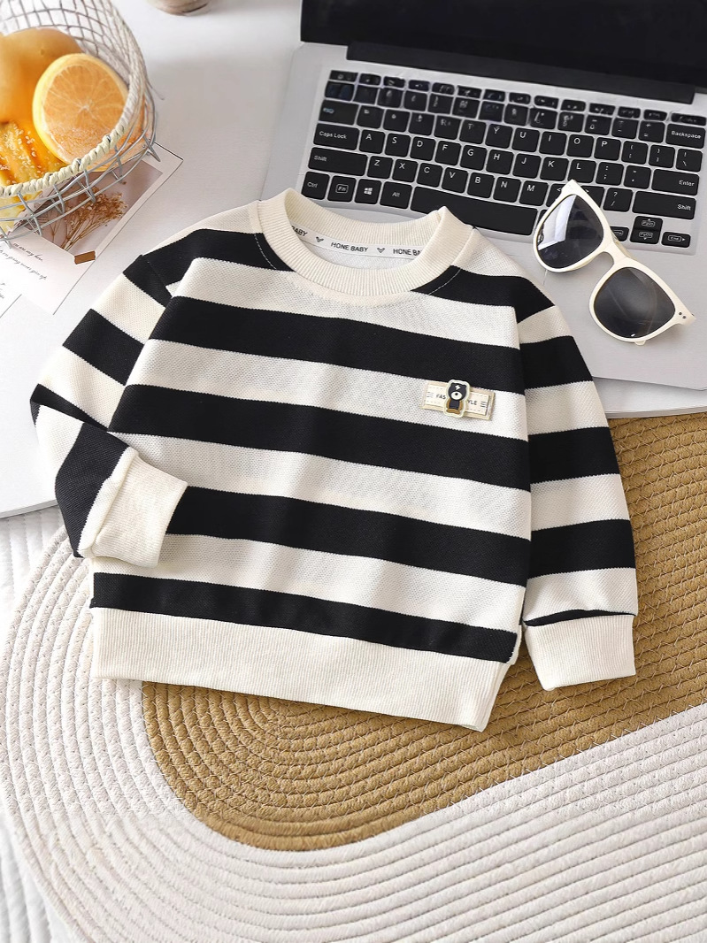 2025 новых весенне-осенних детских полосатых толстовок для мальчиков и девочек, универсальные топы с круглым вырезом, модные детские верхние базовые слои верхней одежды.